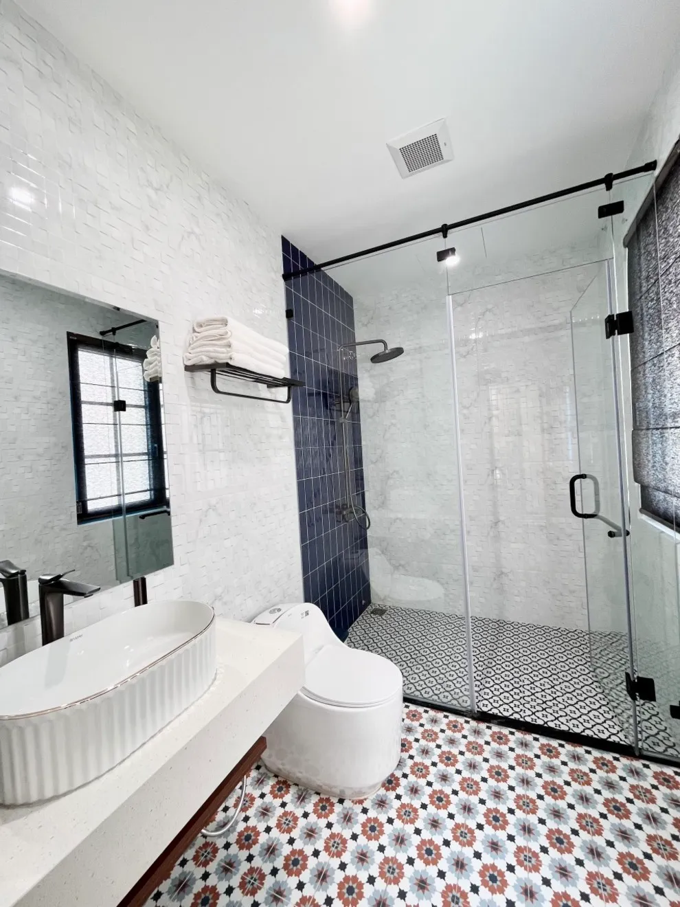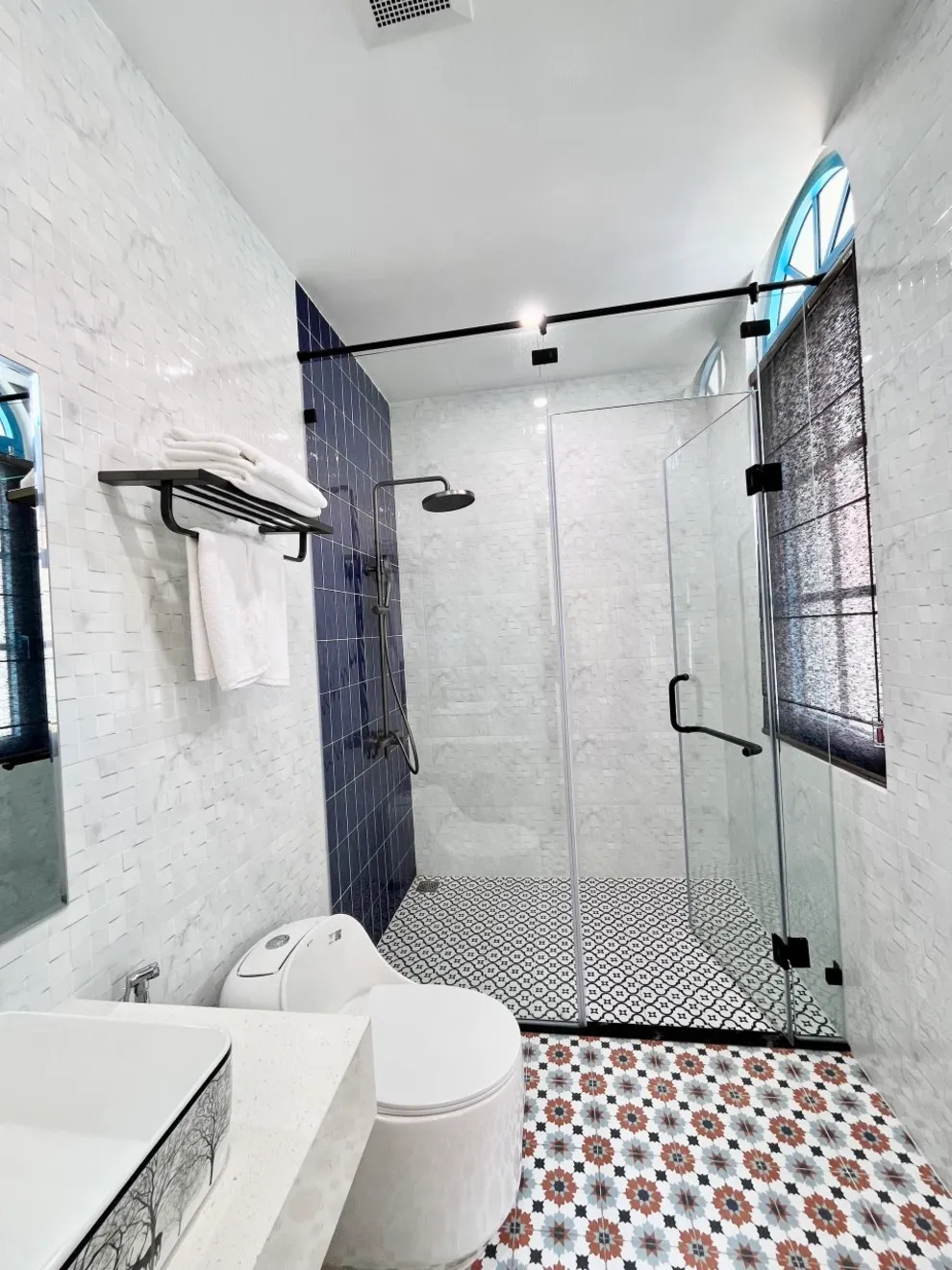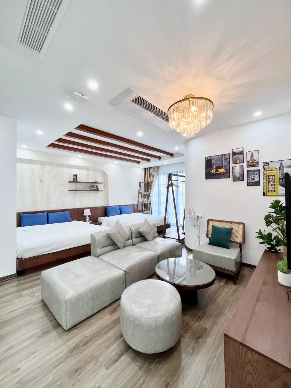 - Phòng này cực kỳ rộng, bao gồm 4 giường ngủ 1m8 được sắp xếp trong cùng một không gian suite, đi kèm là một phòng khách riêng và 2 nhà vệ sinh biệt lập ngay bên trong phòng.