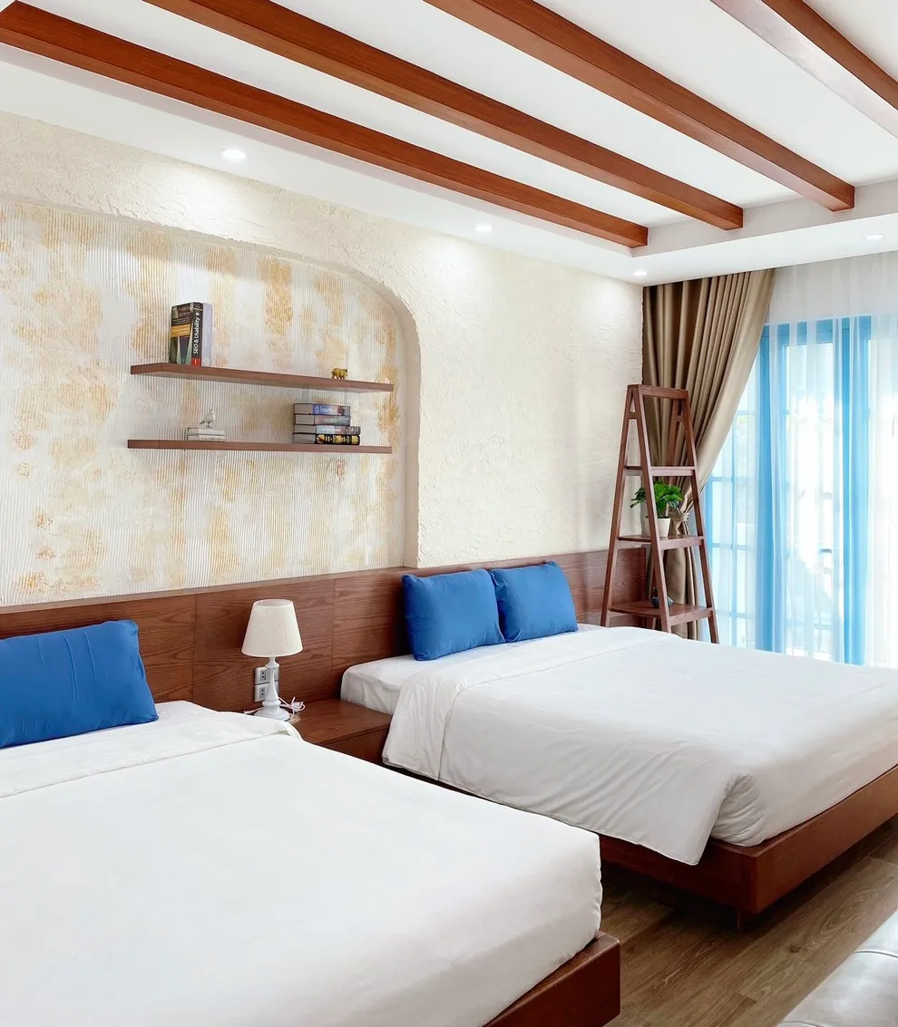 Điểm khác biệt ấn tượng của Calvia C3-07 chính là lối thiết kế phòng ngủ linh hoạt và thông minh. Villa sở hữu 4 phòng ngủ với tổng cộng 7 giường lớn, 1 giường tầng và 2 đệm rời, đảm bảo chỗ nghỉ ngơi thoải mái cho đoàn khách lên đến 25 người. Đặc biệt, tầng 2 được bố trí một phòng Family Suite siêu rộng bao gồm 4 giường 1m8 và phòng khách riêng, tạo nên một không gian sinh hoạt chung ấm cúng cho cả nhà. Trong khi đó, các tầng trên mang lại sự riêng tư với các phòng master giường lớn và phòng giường tầng vui nhộn tại tầng 4 dành cho trẻ nhỏ.