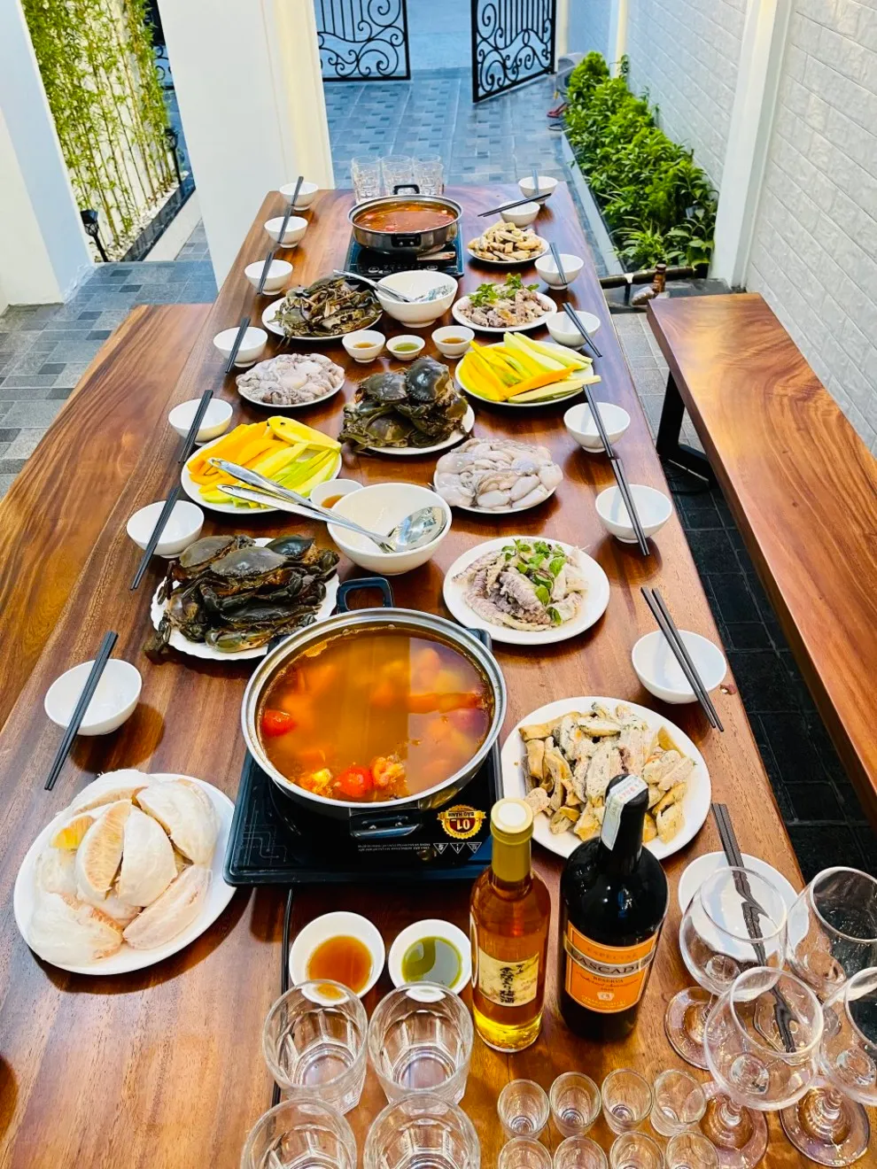 - Quý khách có thể tổ chức tiệc nướng ngoài sân hoặc ăn lẩu trong nhà tùy theo sở thích của đoàn.