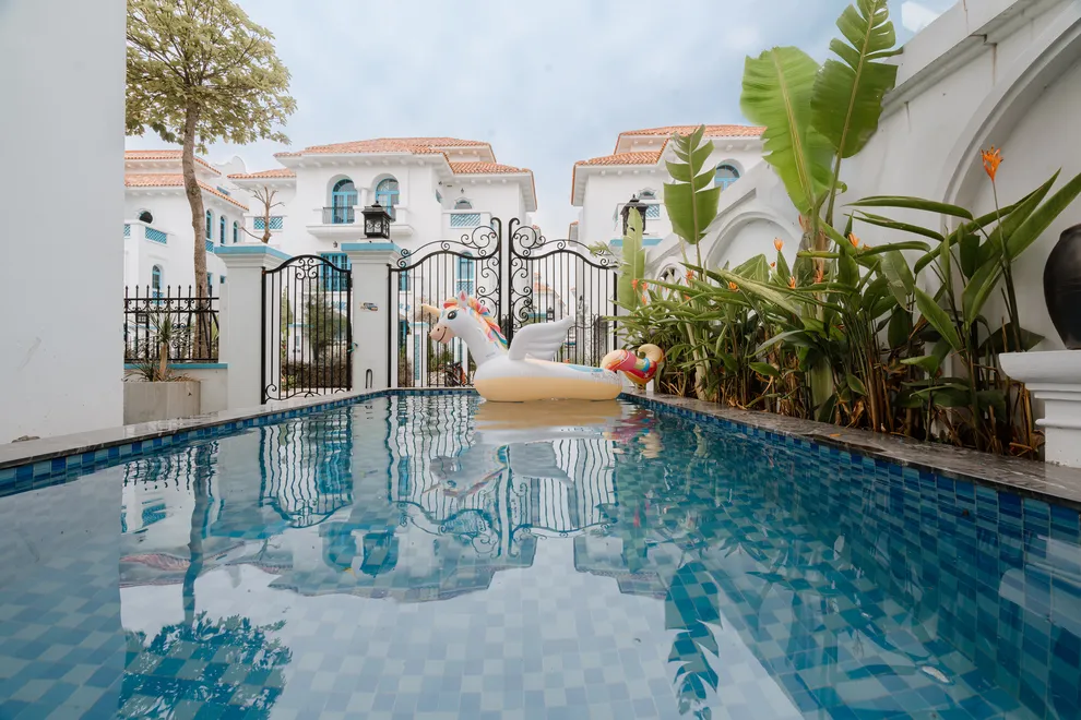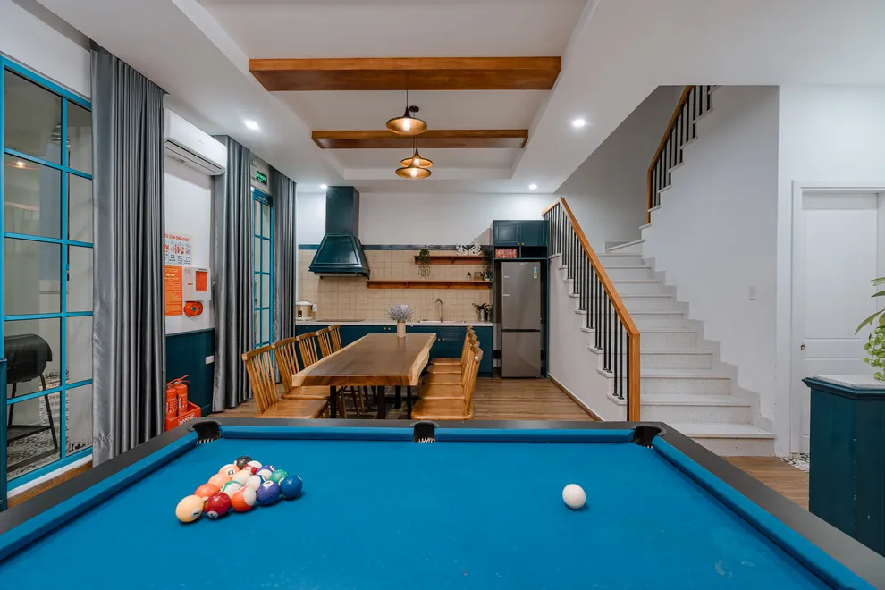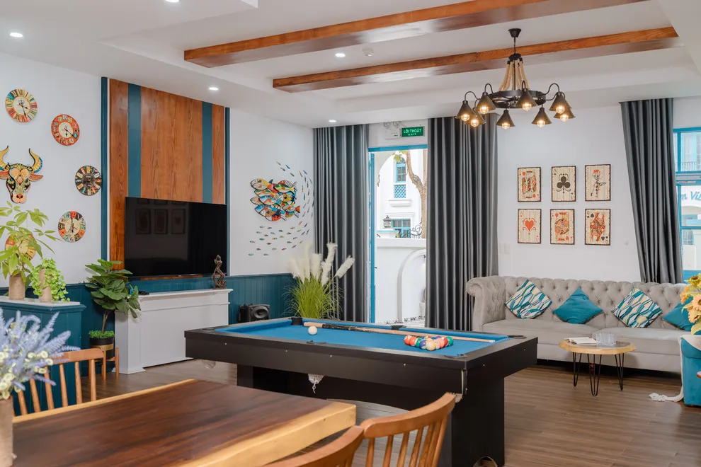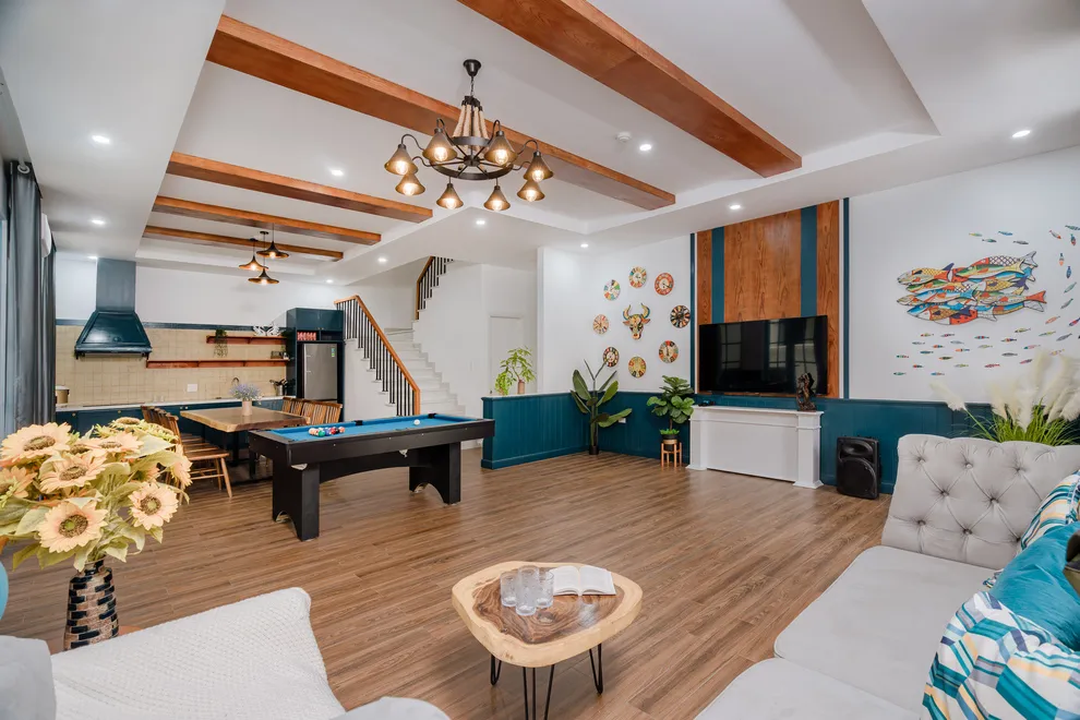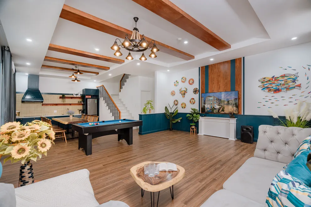 Điểm nhấn làm nên sự khác biệt của Charm Villa chính là không gian giải trí phong phú và riêng tư ngay tại căn. Biệt thự sở hữu bể bơi riêng biệt trong khuôn viên, tạo nên một “resort thu nhỏ” cho cả gia đình. Bên trong, phòng khách rộng rãi được thiết kế như một trung tâm giải trí đa năng với hệ thống loa kéo karaoke sôi động và bàn bi-a mini, giúp mọi thành viên luôn có những phút giây thư giãn tràn đầy tiếng cười. Với cấu trúc 6 phòng ngủ được trang bị 7 giường lớn và 7 nhà vệ sinh riêng biệt, villa đảm bảo không gian nghỉ ngơi thoải mái, kín đáo và tiện nghi tối đa cho các đoàn khách lớn.