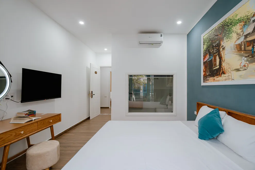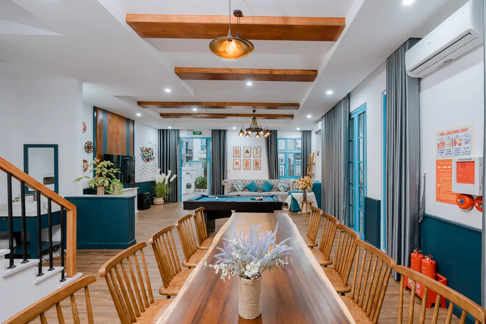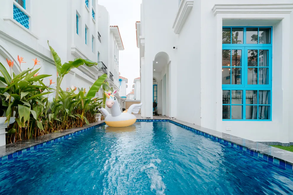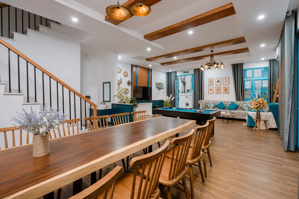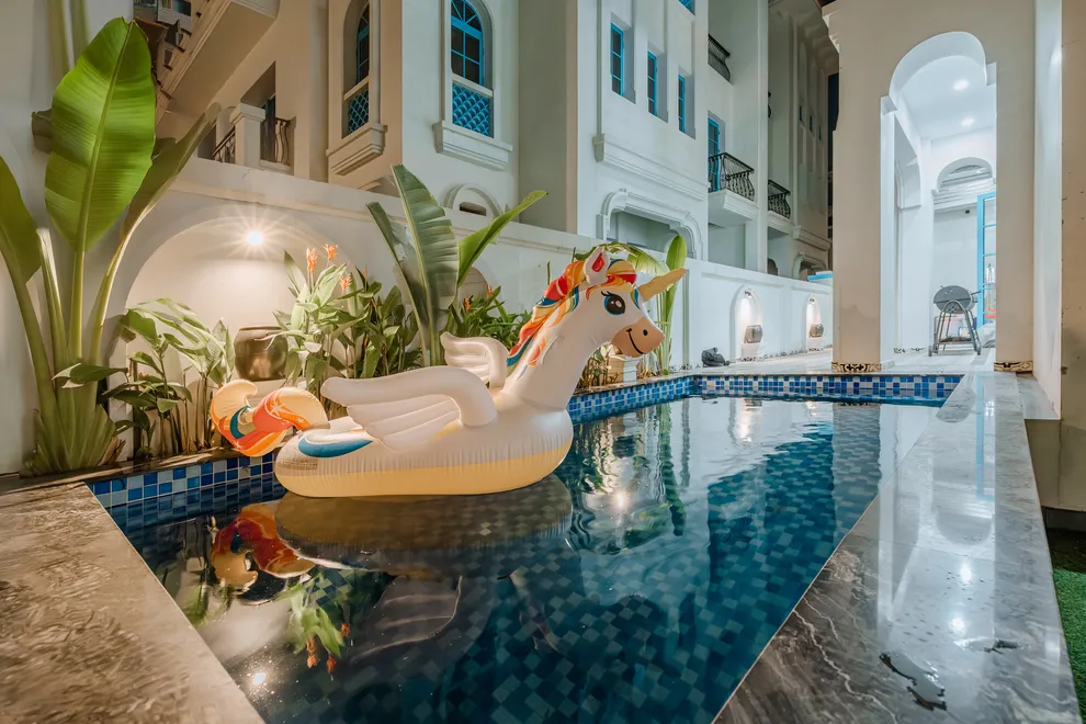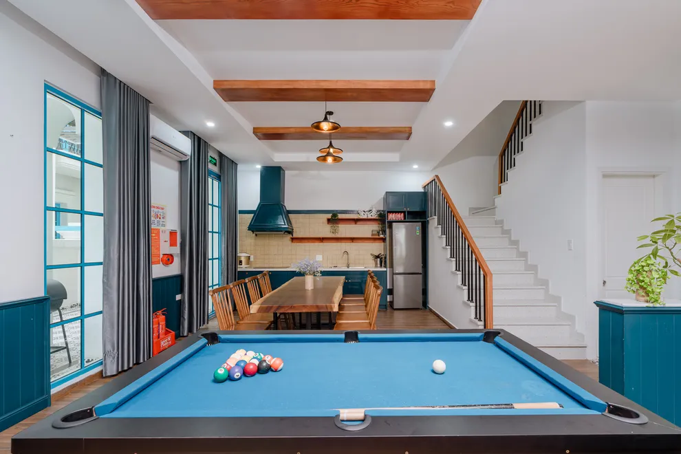 Điểm nhấn làm nên sự khác biệt của Charm Villa chính là không gian giải trí phong phú và riêng tư ngay tại căn. Biệt thự sở hữu bể bơi riêng biệt trong khuôn viên, tạo nên một “resort thu nhỏ” cho cả gia đình. Bên trong, phòng khách rộng rãi được thiết kế như một trung tâm giải trí đa năng với hệ thống loa kéo karaoke sôi động và bàn bi-a mini, giúp mọi thành viên luôn có những phút giây thư giãn tràn đầy tiếng cười. Với cấu trúc 6 phòng ngủ được trang bị 7 giường lớn và 7 nhà vệ sinh riêng biệt, villa đảm bảo không gian nghỉ ngơi thoải mái, kín đáo và tiện nghi tối đa cho các đoàn khách lớn.