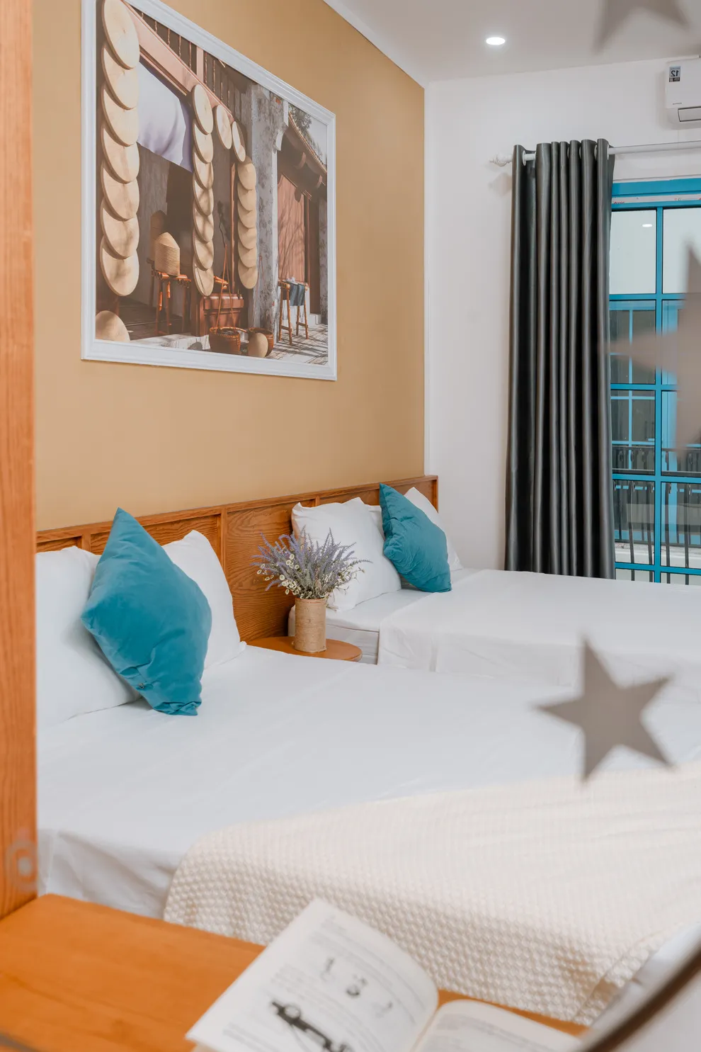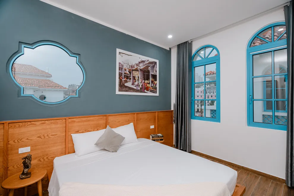 Quý khách có thể ngắm trọn vẹn vẻ đẹp lãng mạn của Đảo Rều từ ban công của các phòng ngủ tầng cao hoặc khu vực sân thượng. Đây là góc "sống ảo" đắt giá nhất, đặc biệt là vào lúc hoàng hôn khi ánh đèn từ phía đảo bắt đầu lên màu.