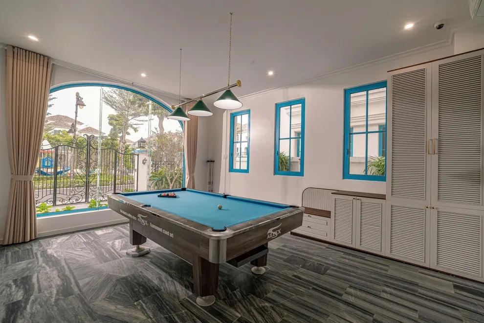 Không chỉ ghi điểm bởi không gian lưu trú, M2-30 Villa còn là một thiên đường giải trí khép kín đầy lôi cuốn. Bạn có thể thả mình trong làn nước xanh mát của bể bơi riêng có hệ thống sục lọc hiện đại, hay thử tài tại phòng Bida riêng với tầm nhìn cực “chill”. Với những ai yêu thích sự sôi động, dàn loa kéo Karaoke luôn sẵn sàng để làm bùng nổ các cuộc vui. Thêm vào đó, lợi thế nằm ngay trước khu vui chơi trẻ em và cách sân Pickleball chỉ 50m giúp biệt thự trở thành điểm đến “vàng” cho mọi lứa tuổi, trong khi hệ thống camera an ninh và bảo vệ 24/24 đảm bảo sự an tâm tuyệt đối cho du khách.