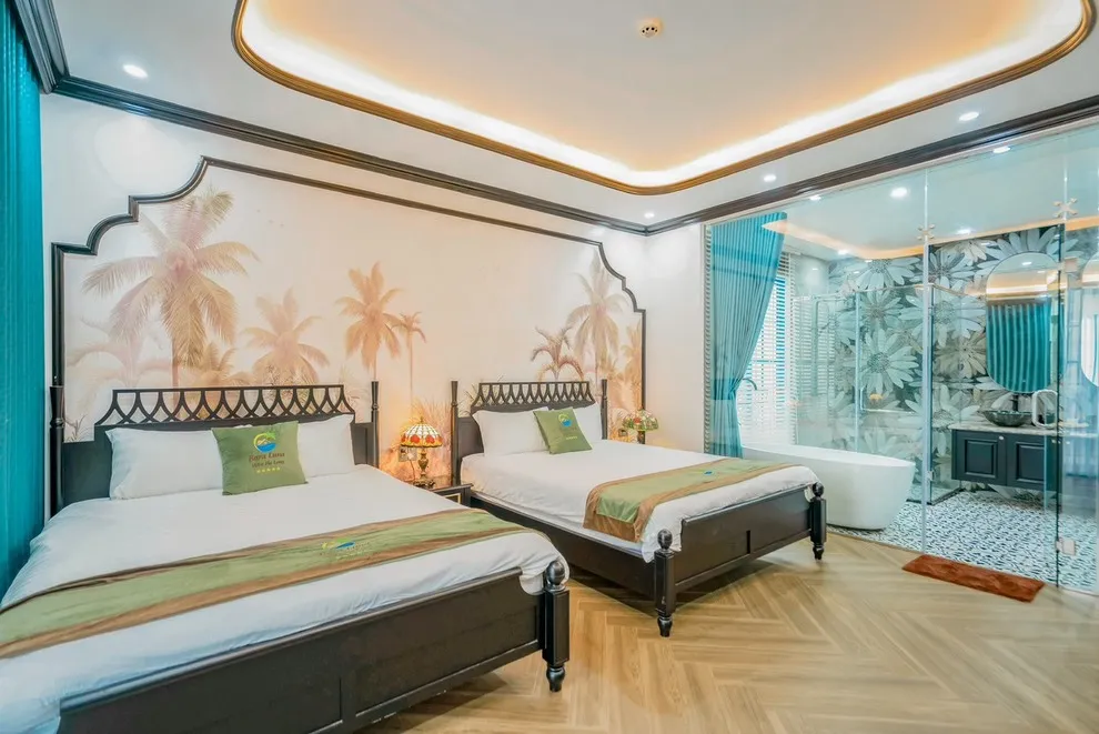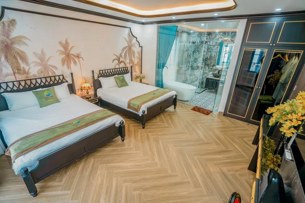 Không gian nghỉ dưỡng tại BaByLon Villa được thiết kế vô cùng đẳng cấp với tổng cộng 05 phòng ngủ, trong đó có tới 04 phòng Master sang trọng được trang bị 08 giường lớn êm ái. Hệ thống 05 phòng tắm hiện đại với đầy đủ tiện nghi, từ bồn tắm thư giãn đến các vật dụng vệ sinh cá nhân cao cấp, đảm bảo mang lại sự thư thái tuyệt đối cho quý khách. Phòng sinh hoạt chung kết hợp phòng khách và khu vực bếp được thiết kế vô cùng rộng rãi, là nơi lý tưởng để cả đoàn quây quần và gắn kết.