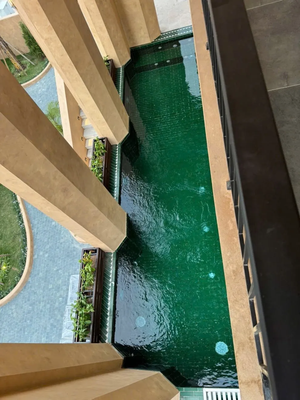 Không phải nước biển tự nhiên (có mùi tanh). Bể bơi Palazzo sử dụng công nghệ điện phân muối (Salt Electrolysis) tiên tiến. Nước có vị mặn nhẹ tinh khiết, giúp khử khuẩn an toàn, không gây khô da, rít tóc hay đỏ mắt như các bể dùng Clo hóa học. Rất an toàn cho trẻ sơ sinh và người có da nhạy cảm.