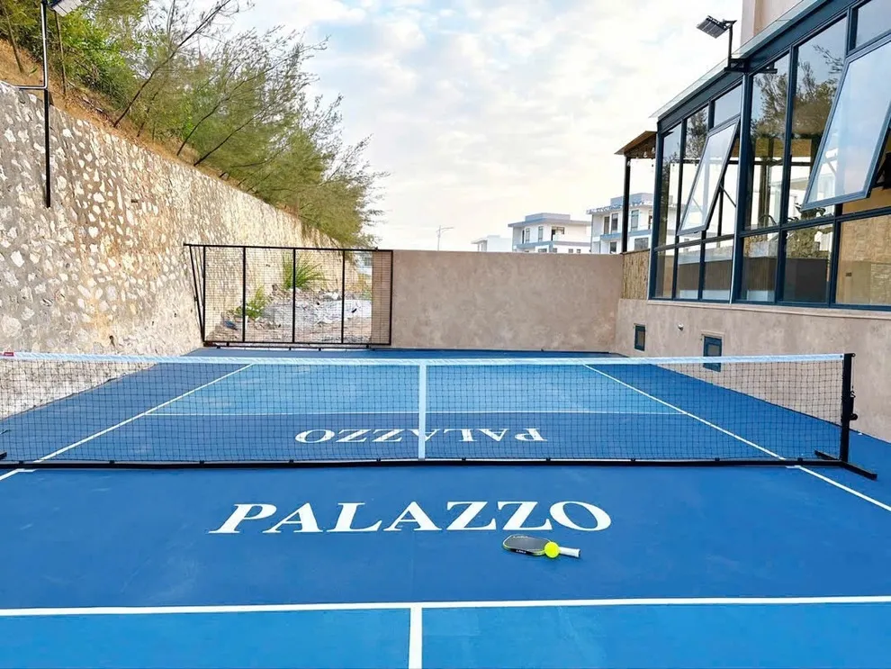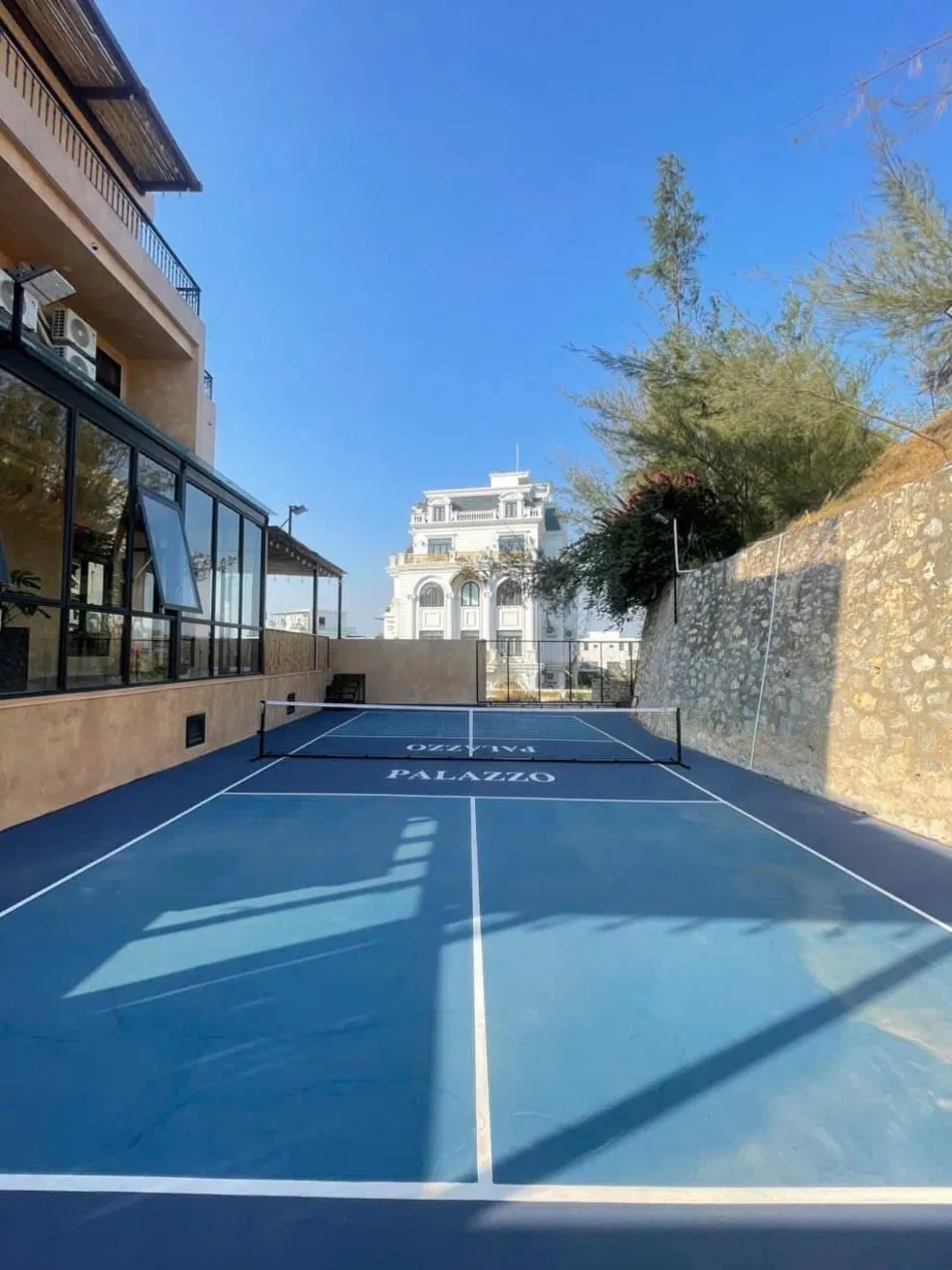 Điều làm nên đẳng cấp khác biệt của Palazzo không chỉ nằm ở vẻ đẹp ngoại thất, mà là sự tiên phong trong việc kiến tạo một lối sống nghỉ dưỡng “Wellness & Sport” (Sức khỏe và Thể thao) ngay tại gia. Đây là một trong những villa hiếm hoi tại Hạ Long sở hữu sân Pickleball riêng biệt được thiết kế theo tiêu chuẩn quốc tế PPA. Không cần đi đâu xa, cả gia đình có thể cùng nhau tham gia bộ môn thể thao “hot trend” nhất hiện nay ngay trong khuôn viên biệt thự. Chưa dừng lại ở đó, Palazzo còn nâng niu sức khỏe của bạn bằng hệ thống bể bơi nước mặn không hóa chất – an toàn tuyệt đối cho làn da và mái tóc, cùng bể sục Jacuzzi bốn mùa “siêu to khổng lồ” dành cho 8 người với 196 đầu phun massage, giúp đánh tan mọi mệt mỏi sau những ngày làm việc căng thẳng.