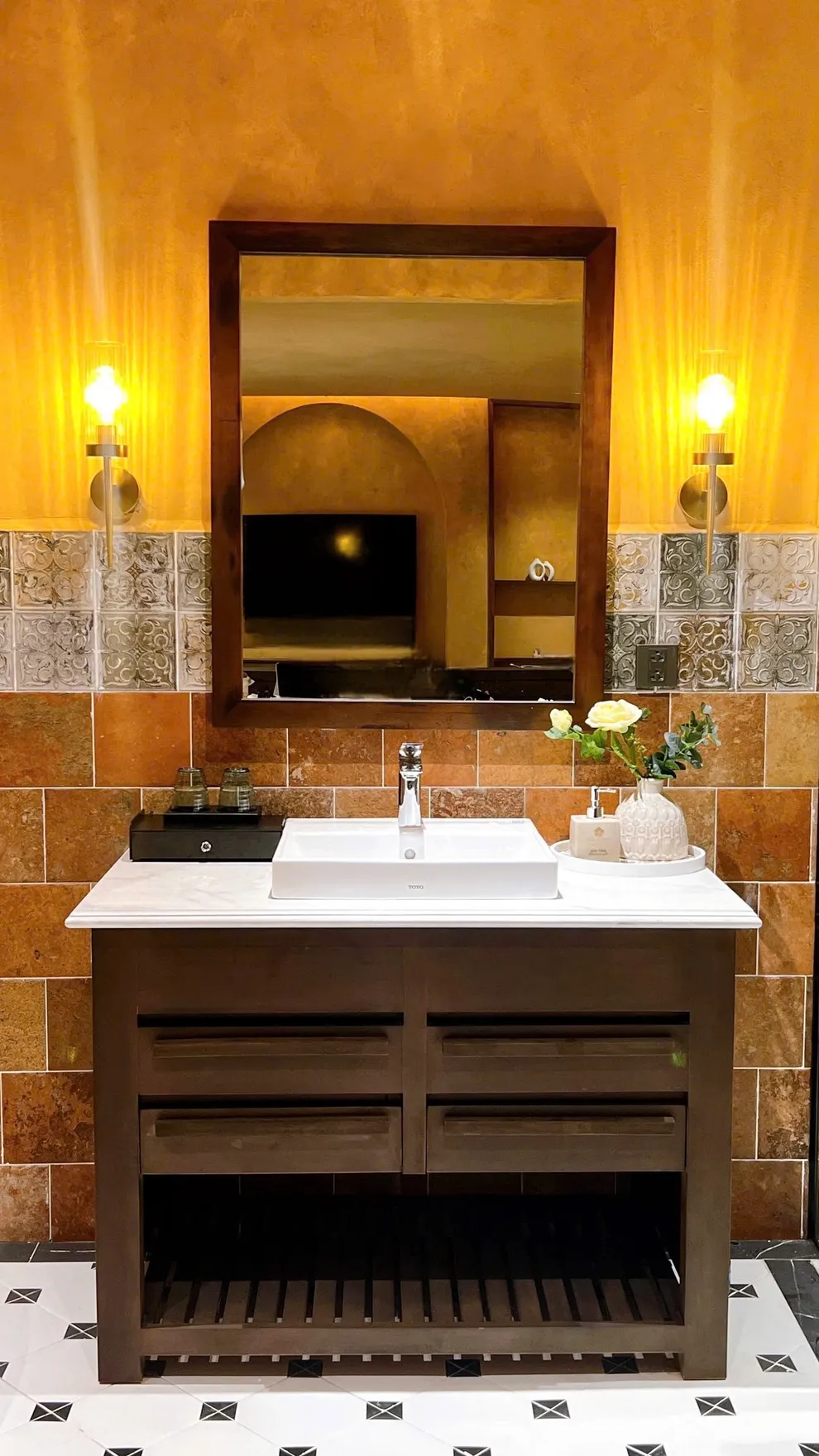 Máy chiếu Galaxy tại Palazzo không chỉ dùng để xem phim. Nó được thiết kế để tạo hiệu ứng "Bầu trời sao / Dải ngân hà" bao trùm căn phòng. Kết hợp với quầy Bar mini, đây là công cụ "sống ảo" cực đỉnh để chụp các bộ ảnh concept mộng mơ hoặc tạo không khí chill khi uống rượu vang mà không cần đi bar bên ngoài.