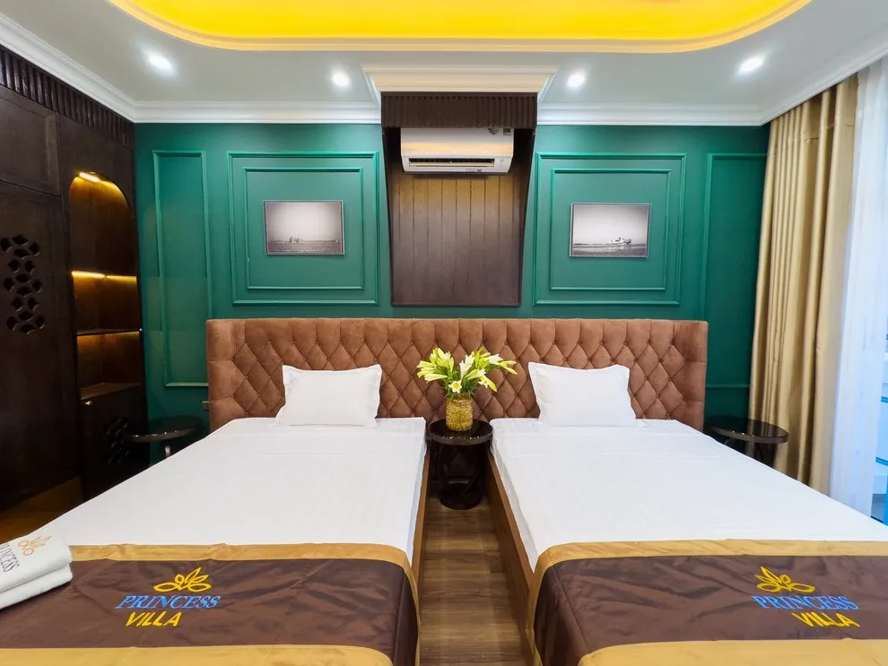 Được thiết kế để trở thành ngôi nhà chung lý tưởng cho các đại gia đình hay những đoàn khách lớn với sức chứa tối đa lên tới 28 người, Princess Villa sở hữu quy mô 7 phòng ngủ (gồm 6 phòng lớn và 1 phòng nhỏ) với tổng cộng 9 giường êm ái. Điểm nhấn đắt giá nâng tầm đẳng cấp cho căn biệt thự chính là hệ thống thang máy lồng kính trong suốt cao cấp, giúp việc di chuyển giữa các tầng trở nên nhẹ nhàng và thú vị hơn bao giờ hết, đặc biệt thuận tiện cho người cao tuổi và trẻ nhỏ. Mọi tiện nghi sinh hoạt từ máy giặt, máy sấy quần áo, bàn là cho đến trọn bộ đồ dùng cá nhân đều được gia chủ chuẩn bị tỉ mỉ, chu đáo như chính ngôi nhà của bạn.