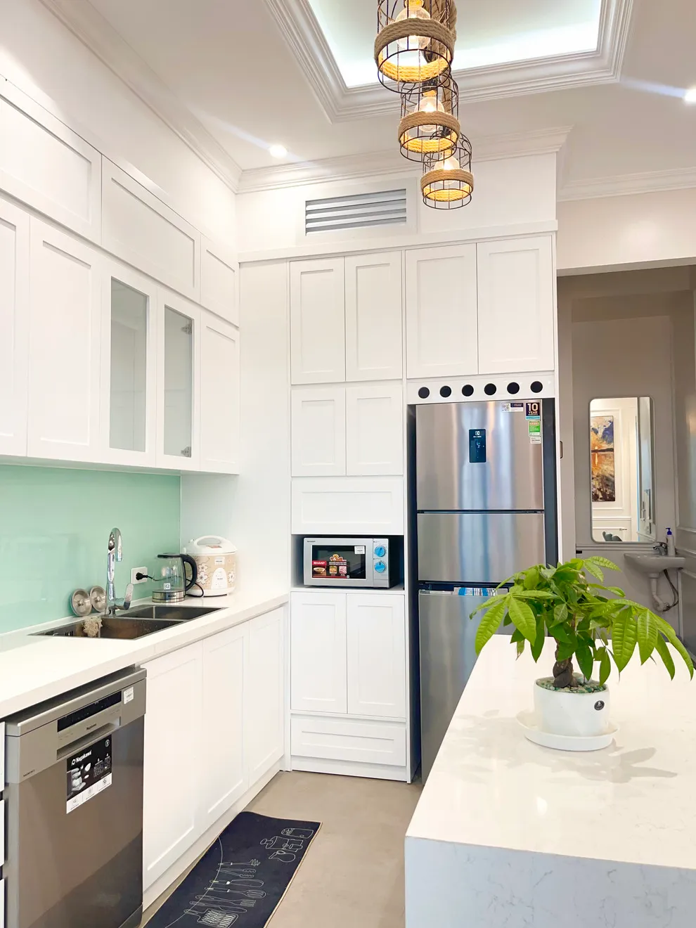 Villa cung cấp đầy đủ "phần cứng" bao gồm bếp từ, lò vi sóng, tủ lạnh lớn và bộ dụng cụ nướng chuyên dụng.