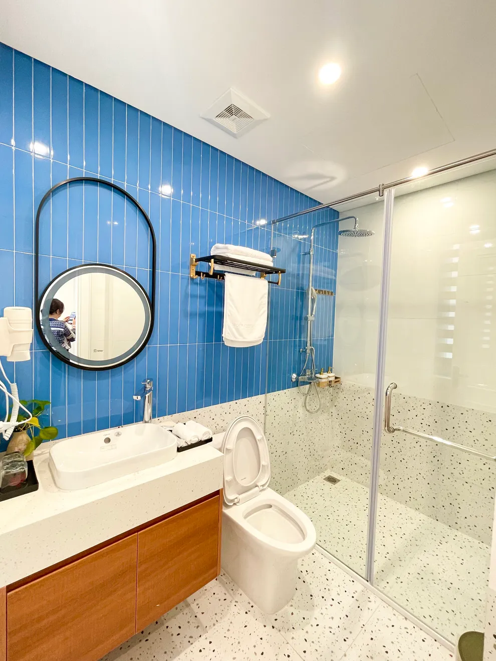 • Vệ sinh: 05 phòng vệ sinh đều được chuẩn bị sẵn sữa tắm, dầu gội, khăn tắm, khăn mặt và kem đánh răng.