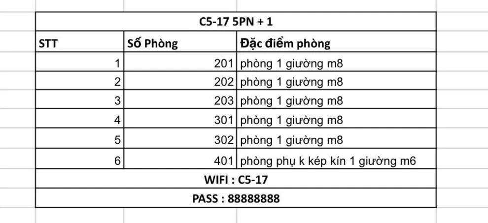 • Tiêu chuẩn cả căn: 12 người lớn và 05 trẻ em dưới 6 tuổi.
