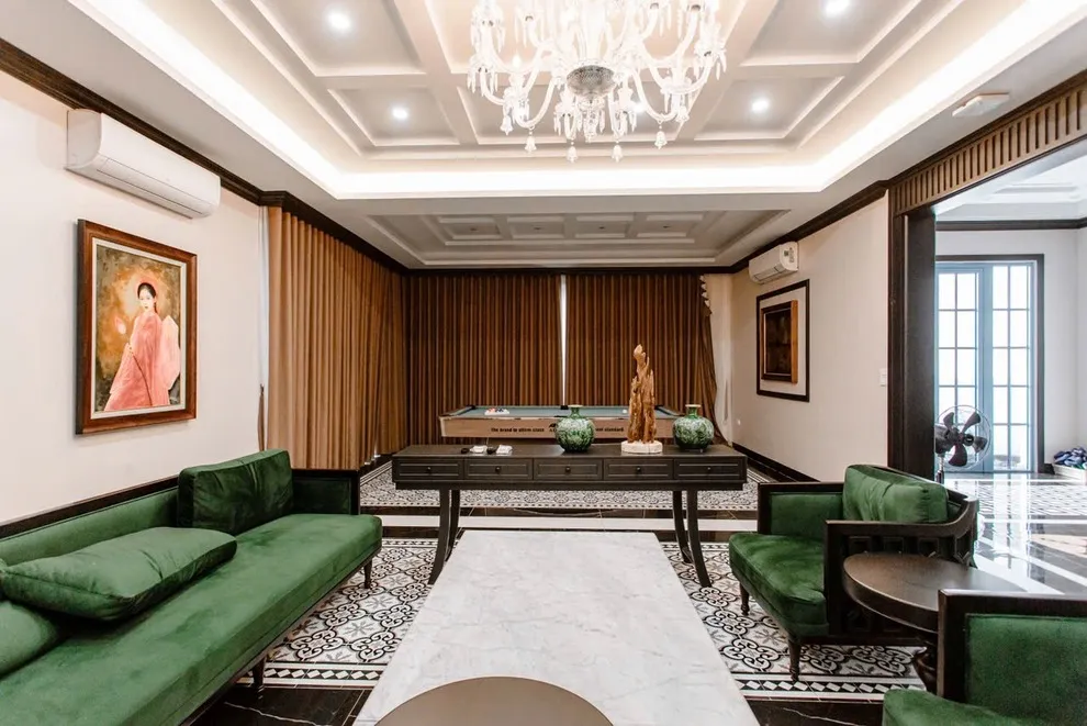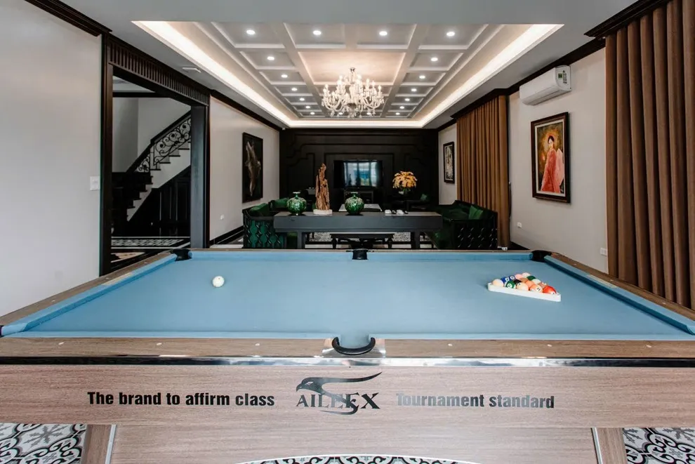 Không chỉ là nơi để ngủ, Songlam Villa là một tổ hợp giải trí thu nhỏ. Tại phòng khách sang trọng, các quý ông có thể thư giãn bên bàn Bida cao cấp, trong khi đại gia đình cùng nhau hát vang với dàn Karaoke chất lượng. Điểm cộng “bắt trend” nhất của Songlam Villa chính là vị trí nằm ngay gần Công viên và Sân Pickleball miễn phí. Bạn hoàn toàn có thể duy trì niềm đam mê thể thao thời thượng này ngay trong kỳ nghỉ dưỡng của mình.