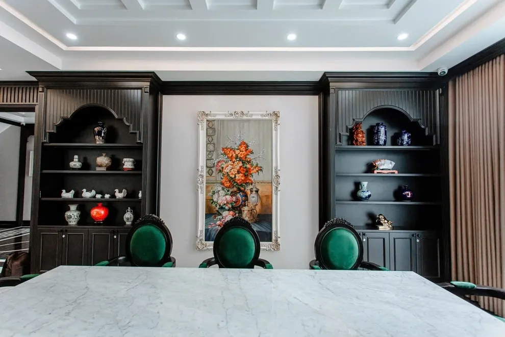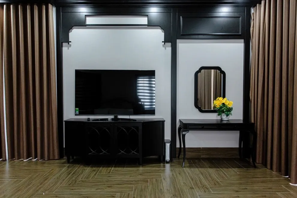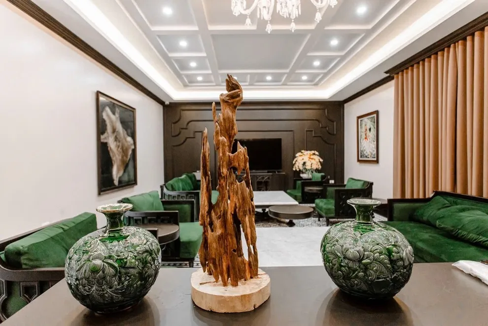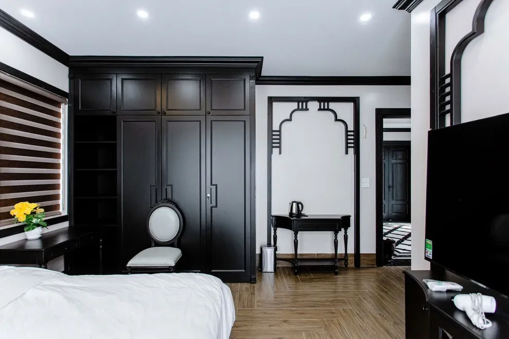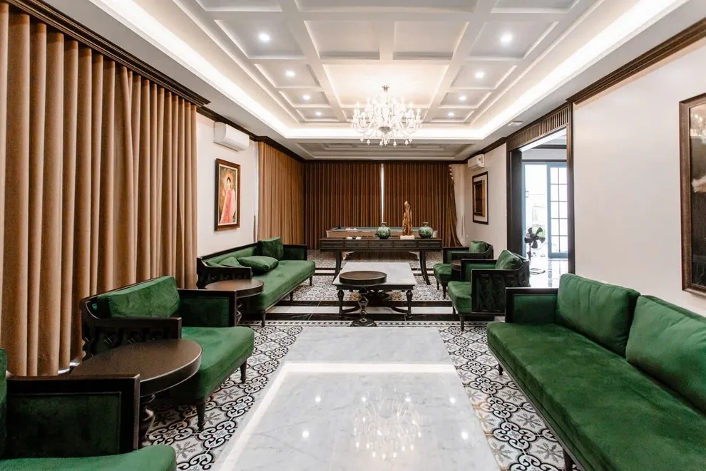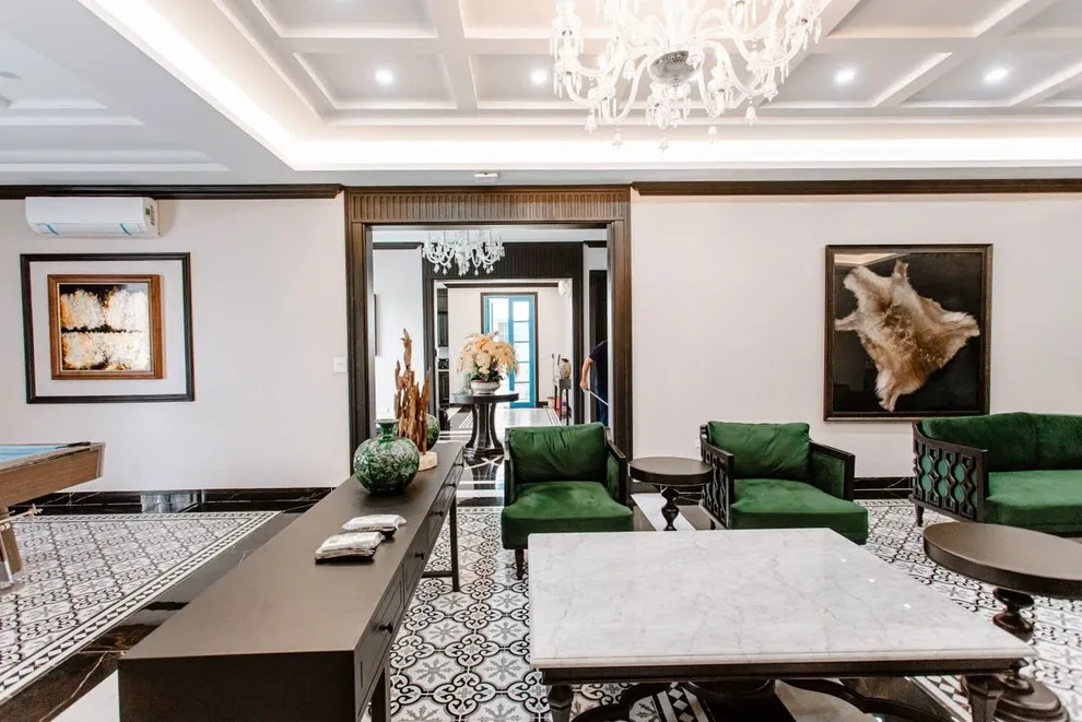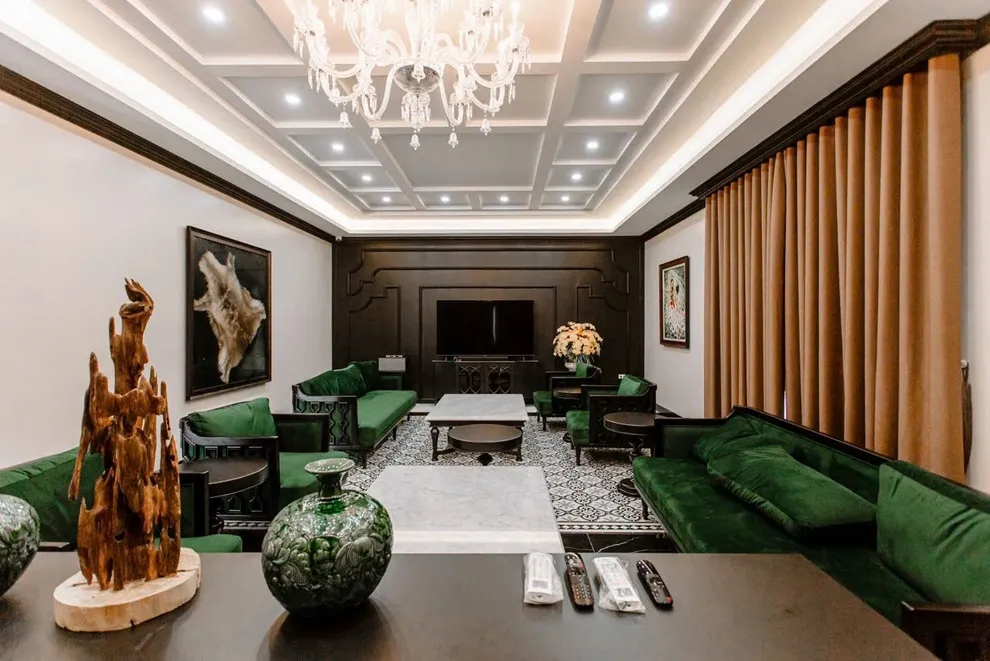 Phong cách Indochine tại Songlam Villa sử dụng nhiều chi tiết trang trí tinh tế để tạo không gian sang trọng. Nếu đoàn có nhiều trẻ nhỏ hiếu động, khi nhận phòng, Quý khách có thể nhờ Quản gia cất bớt các đồ decor dễ vỡ ở tầm thấp lên cao hoặc vào tủ kính để các bé vui chơi thoải mái hơn mà bố mẹ không phải lo lắng thấp thỏm.