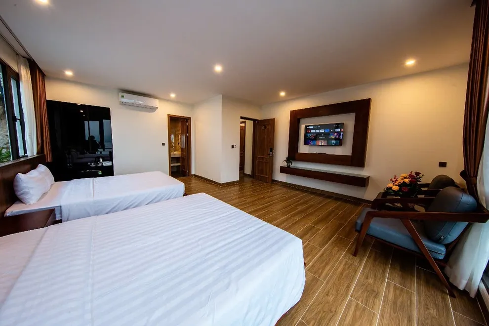Đối với những đoàn khách quy mô lớn hơn hoặc các công ty tổ chức Team Building, việc đặt liên thông hai căn TT07-01 và TT07-02 sẽ tạo nên một không gian “khủng” với 12 phòng ngủ và 22 giường. Khi đó, mọi tiện ích sẽ được nhân đôi: 2 phòng khách, 2 phòng bếp, 2 khu vực nướng BBQ. Cấu trúc liên thông giúp đoàn đông vừa có không gian chung khổng lồ để vui chơi, lại vừa có những khoảng lặng riêng tư khi cần thiết giữa các nhóm nhỏ hoặc các gia đình trong đoàn.