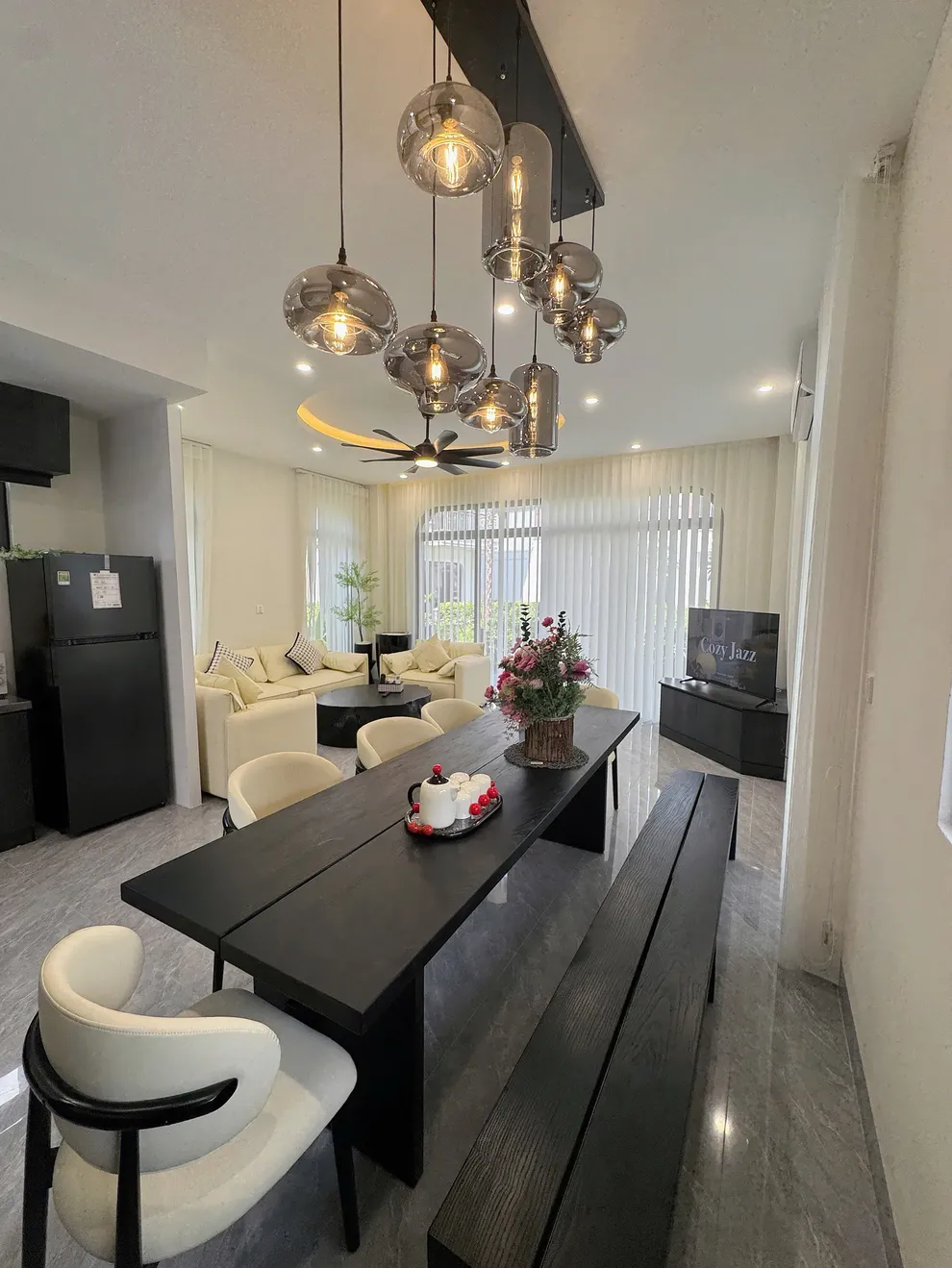 Villa được vận hành theo mô hình "Homeliday" nên trang bị đầy đủ như một ngôi nhà thực thụ. Các vật dụng cơ bản như bếp nấu, nồi niêu, bát đĩa luôn sẵn sàng. Đối với các thiết bị chuyên dụng như nồi lẩu điện hay lò vi sóng, quý khách vui lòng liên hệ xác nhận với Quản gia trước khi đến để chúng tôi sắp xếp hỗ trợ tốt nhất.