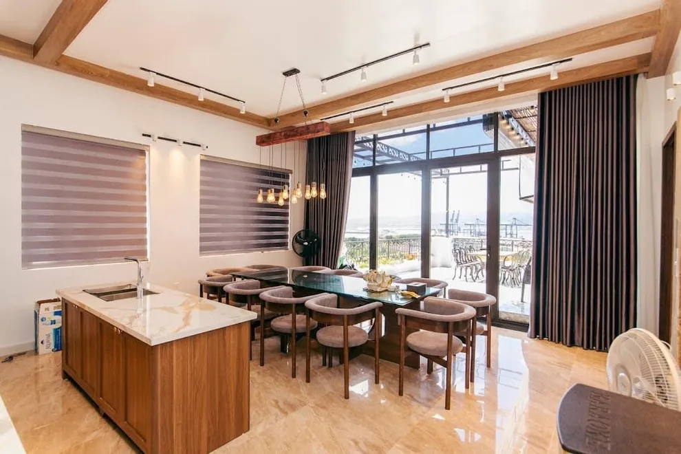 Không gian sinh hoạt chung và ngoài trời tại TT7-16 cũng được thiết kế vô cùng ấn tượng với sân vườn tiểu cảnh xanh mát mang lại cảm giác thư thái ngay khi bước chân vào cổng. Điểm nhấn không thể bỏ qua chính là khu vực sân thượng với không gian view Vịnh Hạ Long cực đỉnh, nơi bạn có thể tổ chức những bữa tiệc BBQ ngoài trời lãng mạn và ngắm nhìn ánh đèn lung linh của thành phố biển từ trên cao. Bên cạnh đó, phòng khách rộng rãi và bếp ăn đầy đủ tiện nghi sẽ giúp mọi thành viên cảm thấy tự nhiên và gần gũi như đang ở trong chính ngôi nhà của mình.