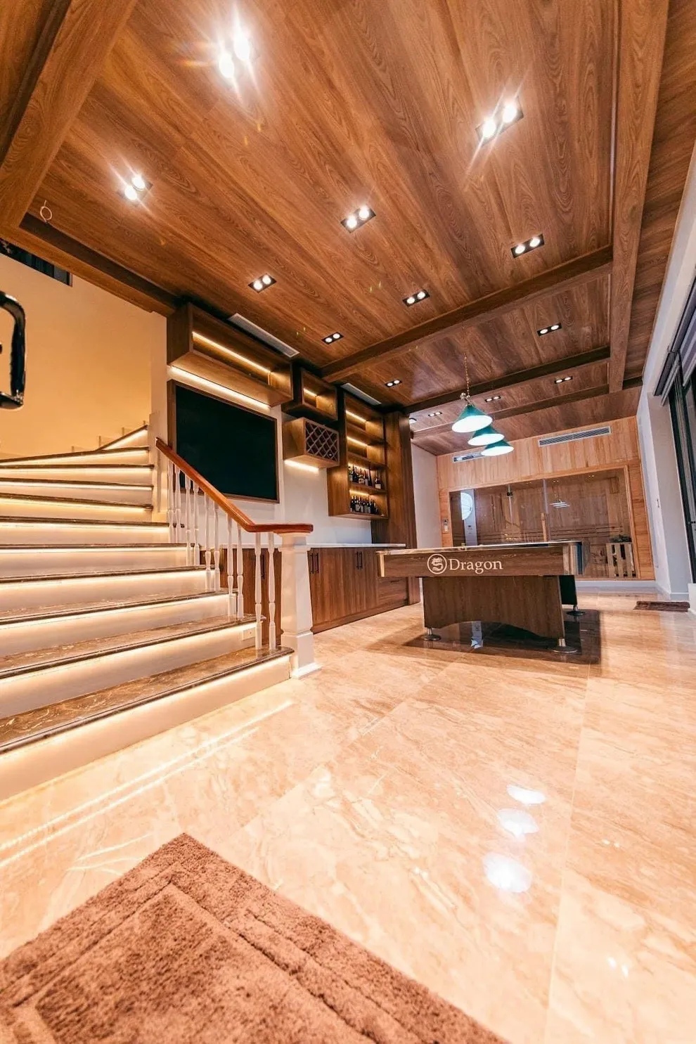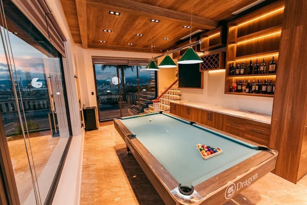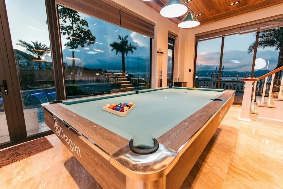 Khu vực Club Billiards kết hợp quầy Bar rượu là tiện ích nội khu nằm trong gói dịch vụ 4 sao của biệt thự. Quý khách có thể tự do sử dụng không gian này để giải trí riêng tư cùng gia đình và bạn bè mà không mất thêm phí thuê theo giờ.