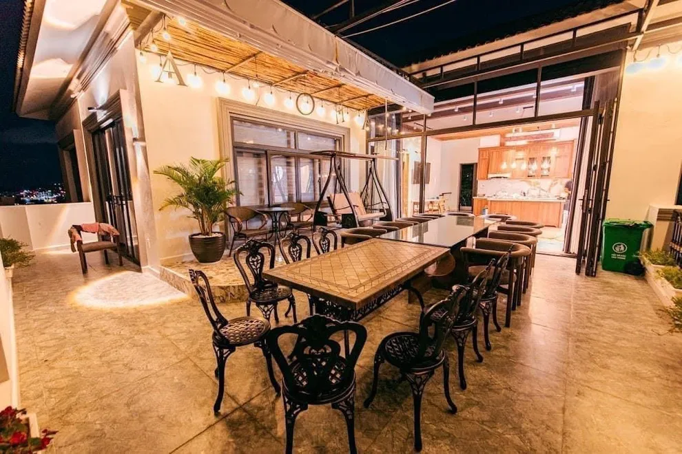 Không gian sân thượng được thiết kế chuyên biệt cho các bữa tiệc ngoài trời với tầm nhìn trực diện ra Vịnh Hạ Long. Biệt thự có sẵn khu vực bếp ăn rộng rãi để chuẩn bị thực phẩm trước khi mang lên sân thượng tổ chức tiệc.