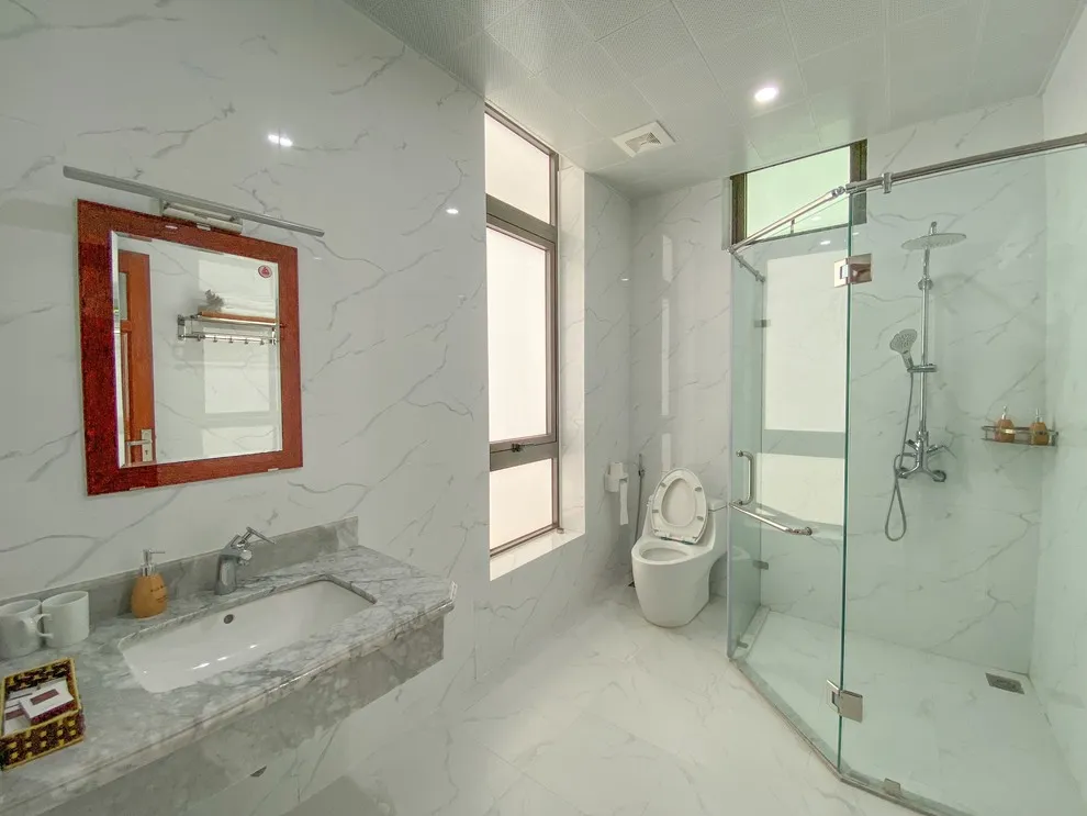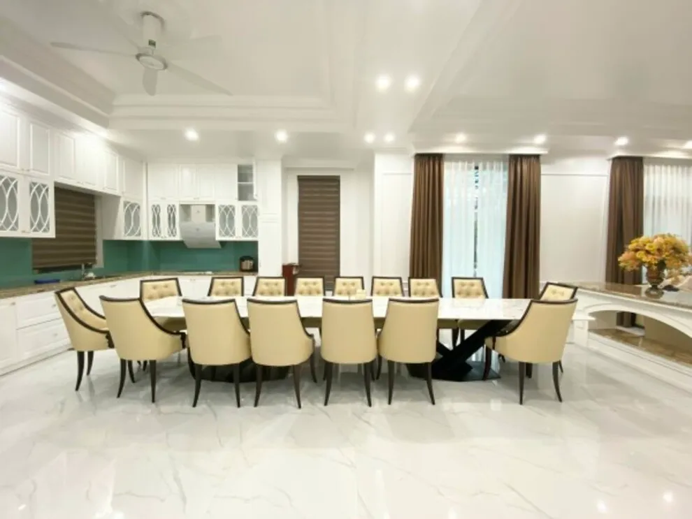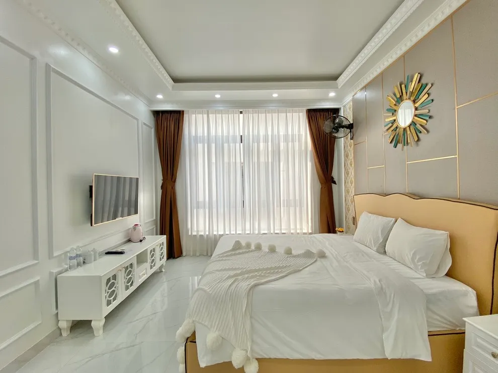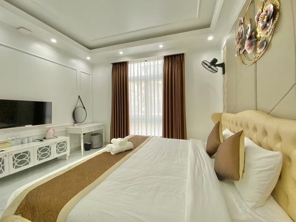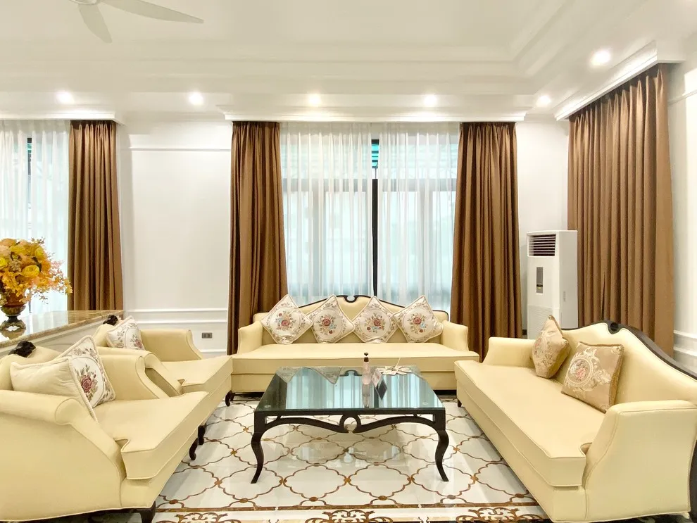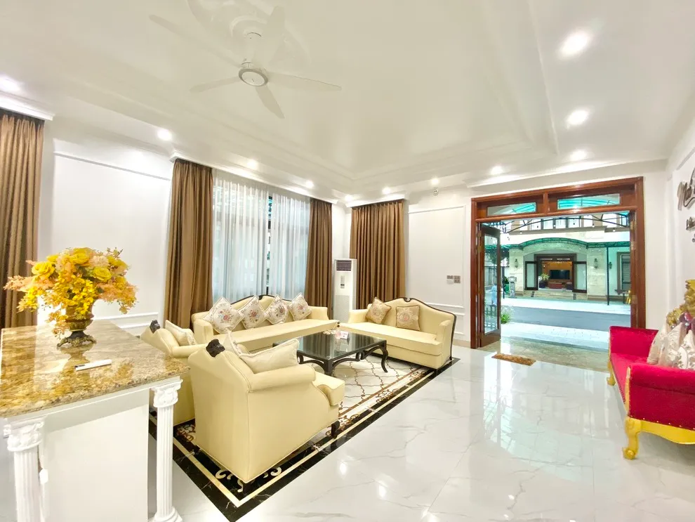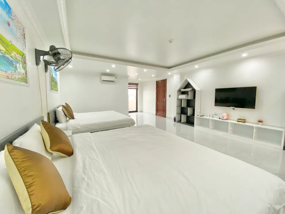 Chào mừng bạn đến với Villa Beverly TT04-07, một tuyệt phẩm kiến trúc nằm trong quần thể nghỉ dưỡng Beverly Hills Hạ Long. Biệt thự gây ấn tượng mạnh với phong cách thiết kế tân cổ điển sang trọng, mang lại không gian sống đẳng cấp và ấm cúng cho các đoàn khách lớn. Điểm nhấn của căn villa chính là phòng khách rộng rãi, nơi trang bị Smart TV lên đến 70 inch, hoàn hảo cho những buổi tối sum họp giải trí cùng gia đình và bạn bè.