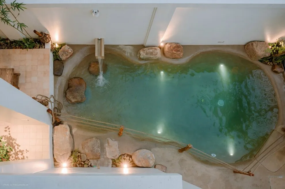 Điểm khác biệt độc nhất vô nhị làm nên tên tuổi của Ươm Retreat chính là hệ thống 2 bể bơi Nature cực chill lần đầu tiên xuất hiện tại Sun Feria. Trên tổng diện tích 250m2, biệt thự mở ra một không gian sân vườn xanh mát, nơi du khách có thể thả mình vào làn nước trong xanh hoặc thưởng thức ly cocktail bên hồ bơi, cảm nhận sự thư thái tuyệt đối giữa không gian thiên nhiên được thiết kế tinh tế.