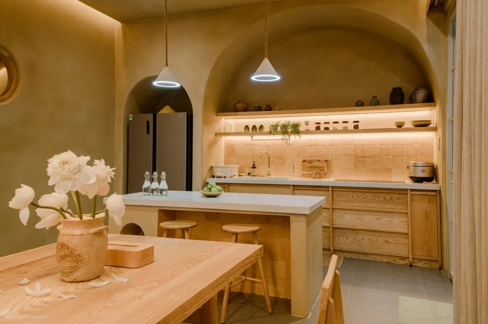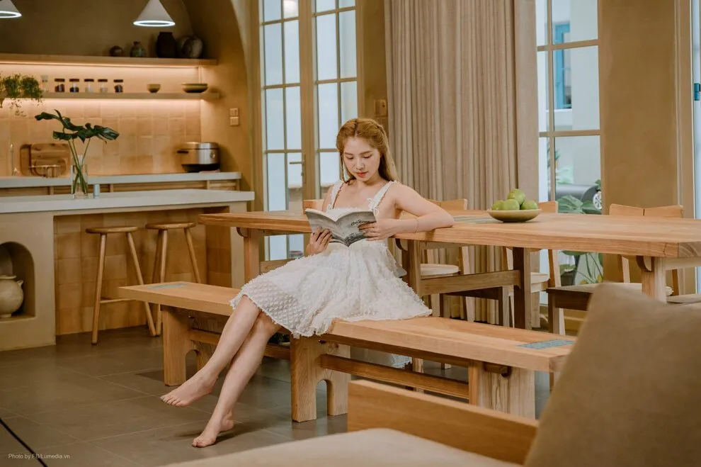 Ươm Retreat còn đặc biệt chú trọng đến trải nghiệm ẩm thực “tại gia” của du khách. Khu vực bếp được trang bị đầy đủ thiết bị từ lò vi sóng, tủ lạnh đến gia vị nấu nướng, sẵn sàng cho những bữa cơm gia đình ấm cúng. Phía ngoài sân vườn, bàn ghế ăn và bếp nướng BBQ đã sẵn sàng cho những bữa tiệc hải sản nướng than hoa thơm lừng giữa không gian xanh. Với dịch vụ tận tâm từ hỗ trợ shipper đến phục vụ bữa ăn đặc sản tại chỗ, Ươm Retreat không chỉ là một nơi lưu trú, mà là nơi bạn thực sự được chăm sóc và nuôi dưỡng mọi giác quan.
