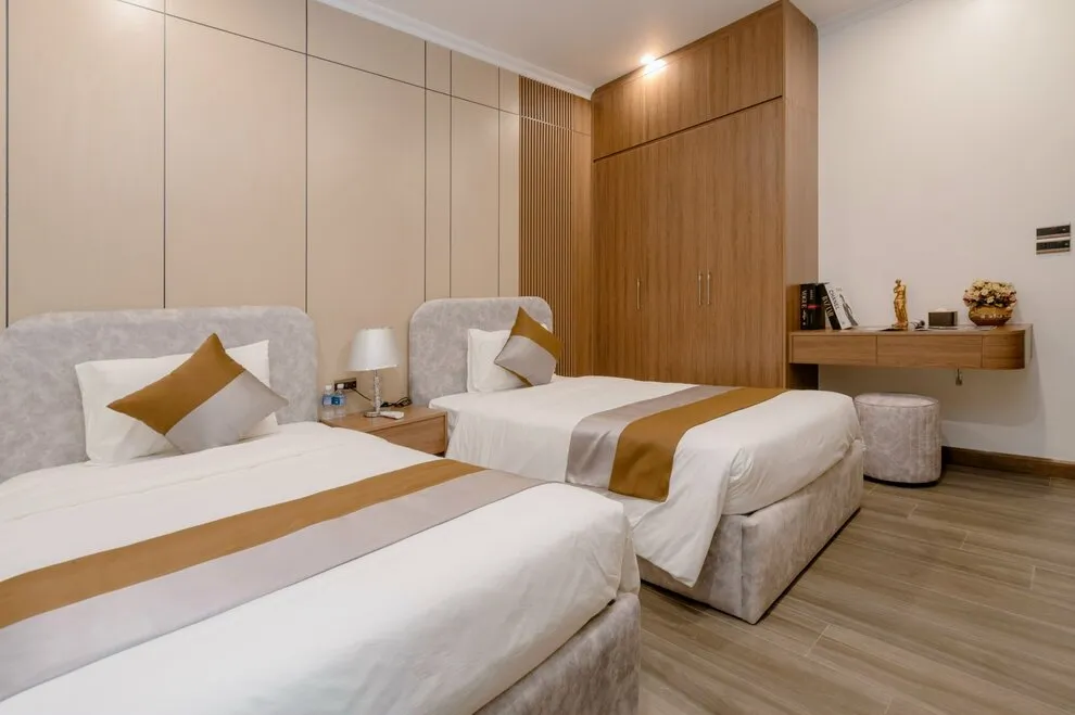 01 phòng có 2 giường trung bình (1m5 x 1m9).