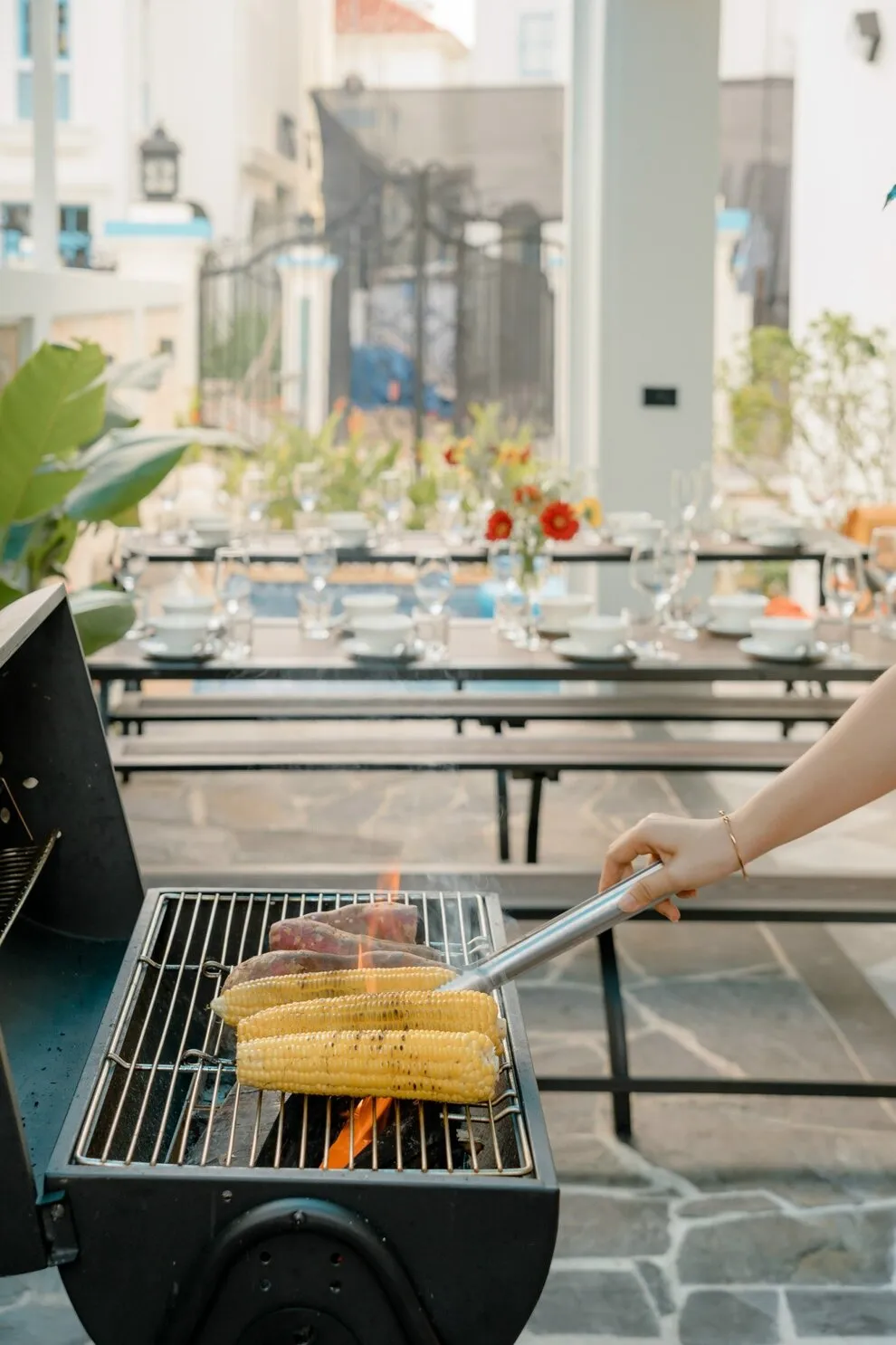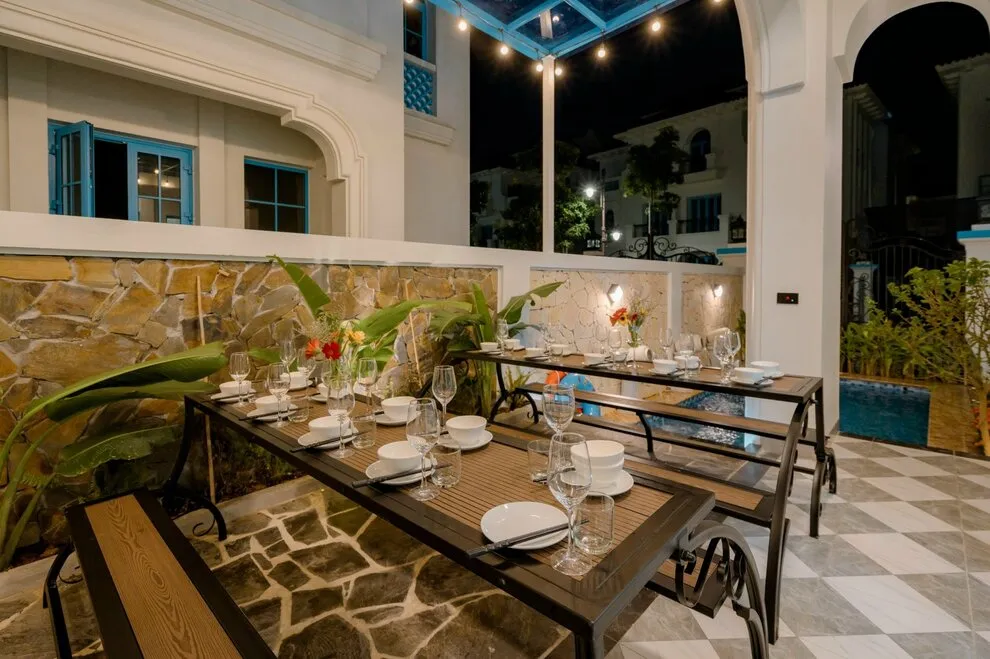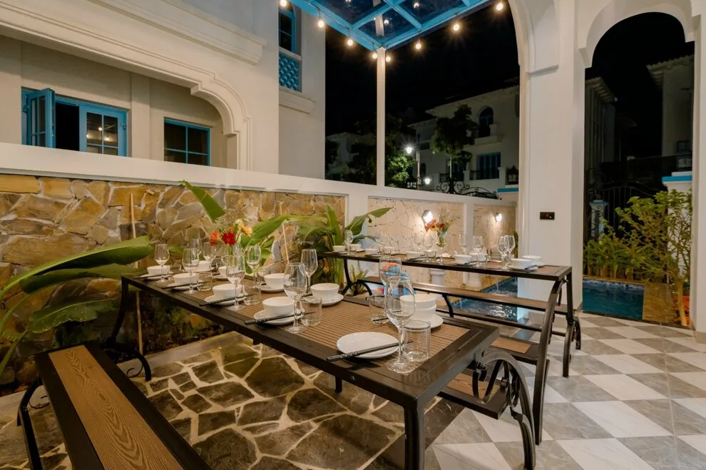 Villa C2-19 sở hữu không gian BBQ ngoài trời "siêu to" nằm ngay cạnh bể bơi riêng, tạo điều kiện lý tưởng để tổ chức các bữa tiệc nướng lớn trong không gian thoáng đãng và sang trọng.