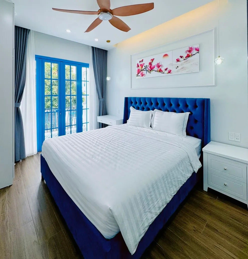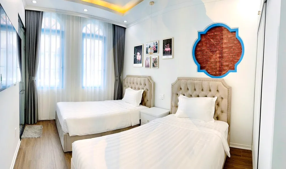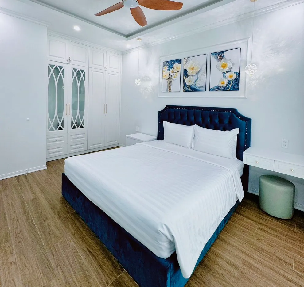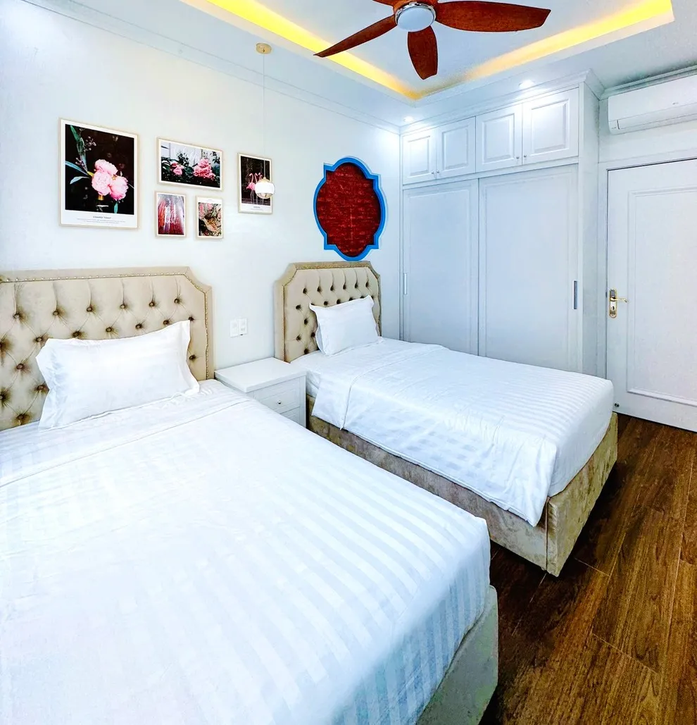 Villa có 4 phòng giường lớn 1m8 nằm ở tầng 2 và tầng 3, rất phù hợp cho các cặp đôi hoặc gia đình có bé nhỏ ngủ cùng bố mẹ. Các phòng có 2 giường (1m6 hoặc 1m2) là lựa chọn tuyệt vời cho nhóm bạn hoặc các bé lớn muốn ngủ riêng giường nhưng chung phòng để dễ quản lý.