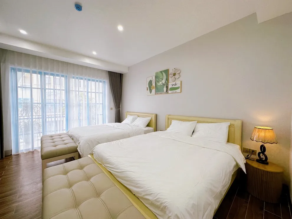 Đây là câu hỏi được quan tâm nhất. Ngoài 16 giường lớn (thường ngủ được 2-3 người/giường tùy kích thước), Villa có thêm 01 phòng phụ và chuẩn bị sẵn số lượng lớn đệm phụ (kèm chăn ga gối). Các phòng ngủ tại C5-25 đều có diện tích rất rộng, nên việc kê thêm đệm phụ vẫn đảm bảo không gian thoáng mát và chỗ ngủ thoải mái cho toàn bộ thành viên.