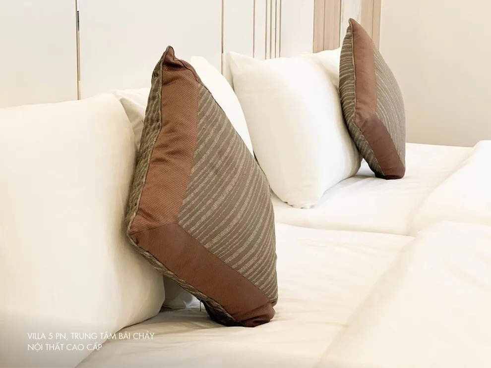 Về không gian nghỉ ngơi, Villa sở hữu quy mô 6 phòng ngủ với 8 giường được bố trí khoa học (gồm 5 phòng lớn và 1 phòng nhỏ). Sự đa dạng trong kích thước giường (từ 1m5 đến 1m8) giúp C603 linh hoạt đón tiếp các đoàn khách đông người, đảm bảo ai cũng có một chỗ ngả lưng êm ái và riêng tư với 5 WC riêng biệt đầy đủ đồ amenity tiêu chuẩn khách sạn.