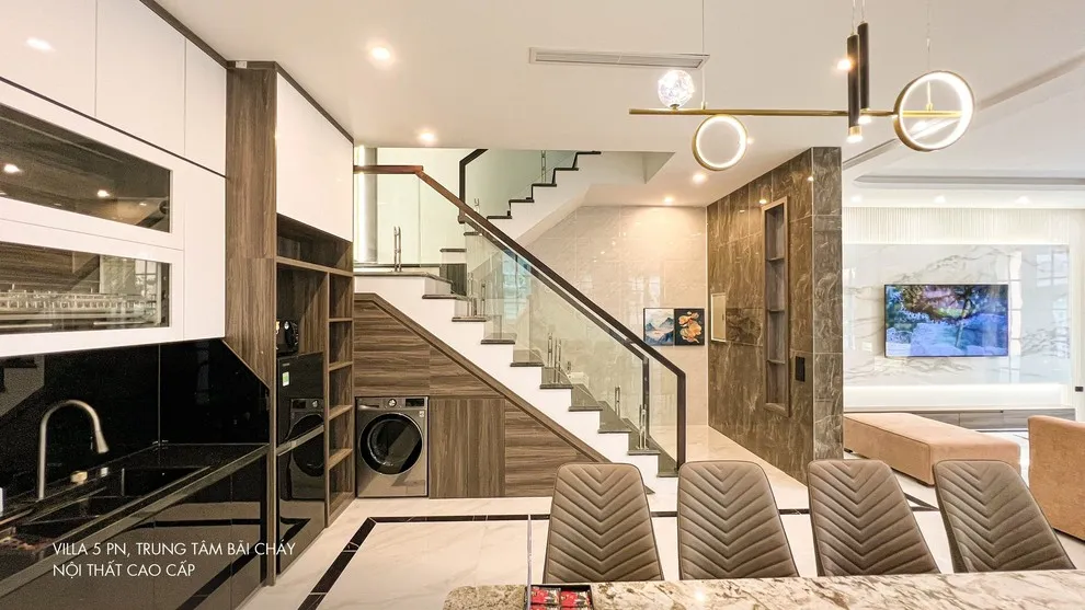 Điểm cộng tuyệt đối khiến C603 trở nên khác biệt so với hàng loạt căn villa khác chính là bể bơi riêng có mái che. Thiết kế thông minh này nằm giữa khu vườn cây xanh mát, cho phép gia đình bạn thỏa sức đắm mình trong làn nước mát lạnh hay tổ chức pool party sôi động bất chấp trời nắng gắt hay những cơn mưa rào bất chợt của vùng biển. Kết hợp với không gian phòng khách sang trọng và khu bếp mở hiện đại, C603 mang lại cảm giác thư thái, tiện nghi như đang ở trong chính ngôi nhà của mình.