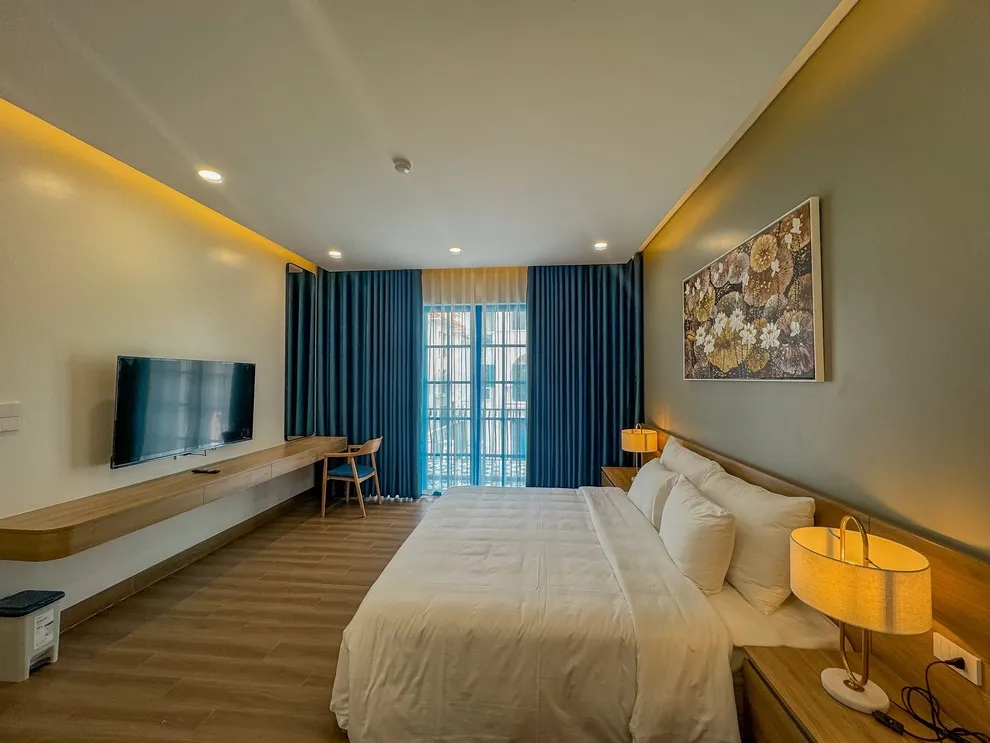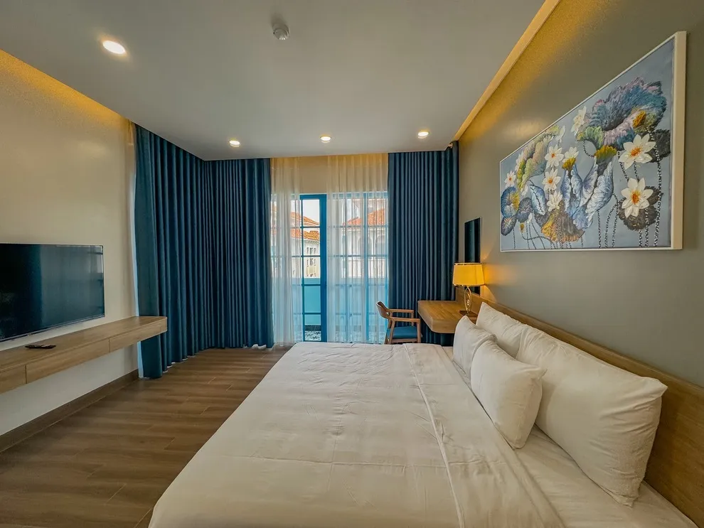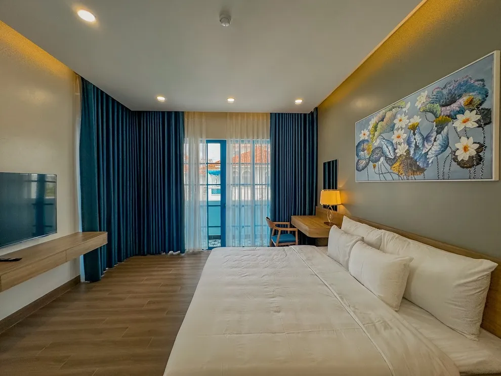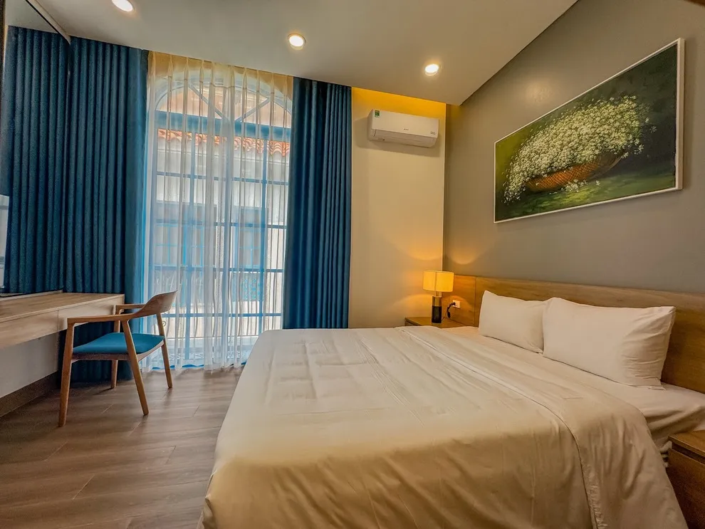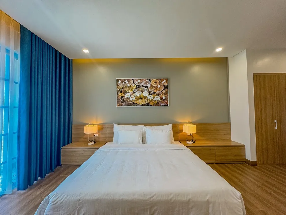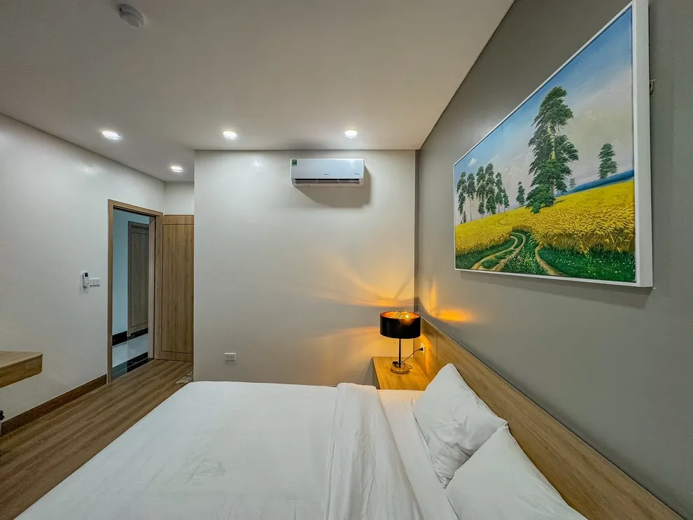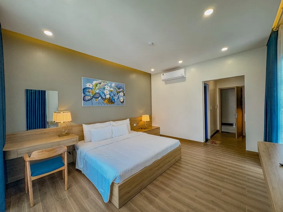 Đây là điểm cộng lớn của C7-31. Với kích thước Super King (2m x 2,2m), giường này rất rộng, có thể ngủ ghép 3 người lớn hoặc 2 người lớn + 2 trẻ em cực kỳ thoải mái. Đây là lý do Villa có thể đón đoàn đông lên tới 22 người dù chỉ có 7 phòng ngủ.