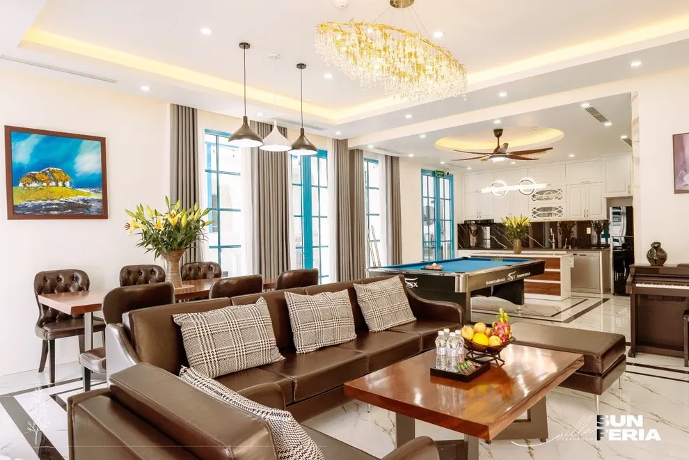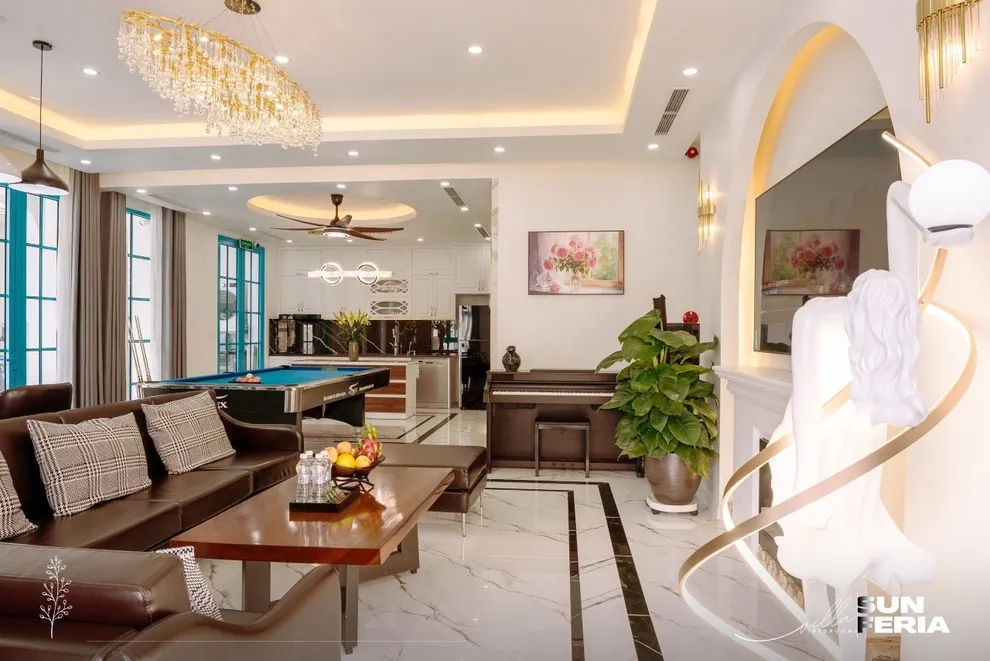 Chào mừng bạn đến với Villa C806 Prime Homes – một tuyệt phẩm nghỉ dưỡng được mệnh danh là “trái tim xanh” của khu Sun Feria Hạ Long. Nếu bạn đang khao khát một kỳ nghỉ xa hoa đúng nghĩa, nơi sở hữu bể bơi riêng lớn nhất khu nghỉ dưỡng, thì đây chính là đích đến không thể bỏ qua. C806 không chỉ đơn thuần là một nơi lưu trú, mà là một không gian sống nghệ thuật, nơi lối thiết kế hiện đại hòa quyện hoàn hảo với hơi thở của thiên nhiên. Tại đây, bạn sẽ tìm thấy sự bình yên tuyệt đối khi ngắm nhìn đàn cá Koi bơi lội tung tăng, hay thả hồn vào những giai điệu du dương bên cây đàn Piano sang trọng ngay trong phòng khách – một trải nghiệm lãng mạn hiếm có bên bờ vịnh di sản.