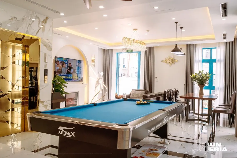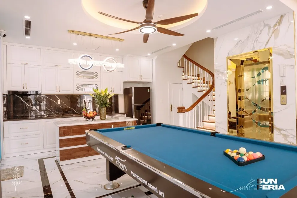 Không chỉ là chốn nghỉ ngơi tĩnh lặng, C806 còn là thiên đường giải trí sôi động cho cả đoàn lên tới 28 người. Phòng khách rộng rãi là nơi gắn kết các thành viên với bàn Bi-a cao cấp và dàn Karaoke gia đình hiện đại. Khu vực bếp được thiết kế thông minh với đầy đủ đồ dùng nấu nướng trong nhà kết hợp cùng bếp sơ chế ngoài trời thoáng đãng, tạo điều kiện lý tưởng nhất cho những bữa tiệc BBQ hải sản nướng than hoa thơm lừng mà không lo ám mùi.