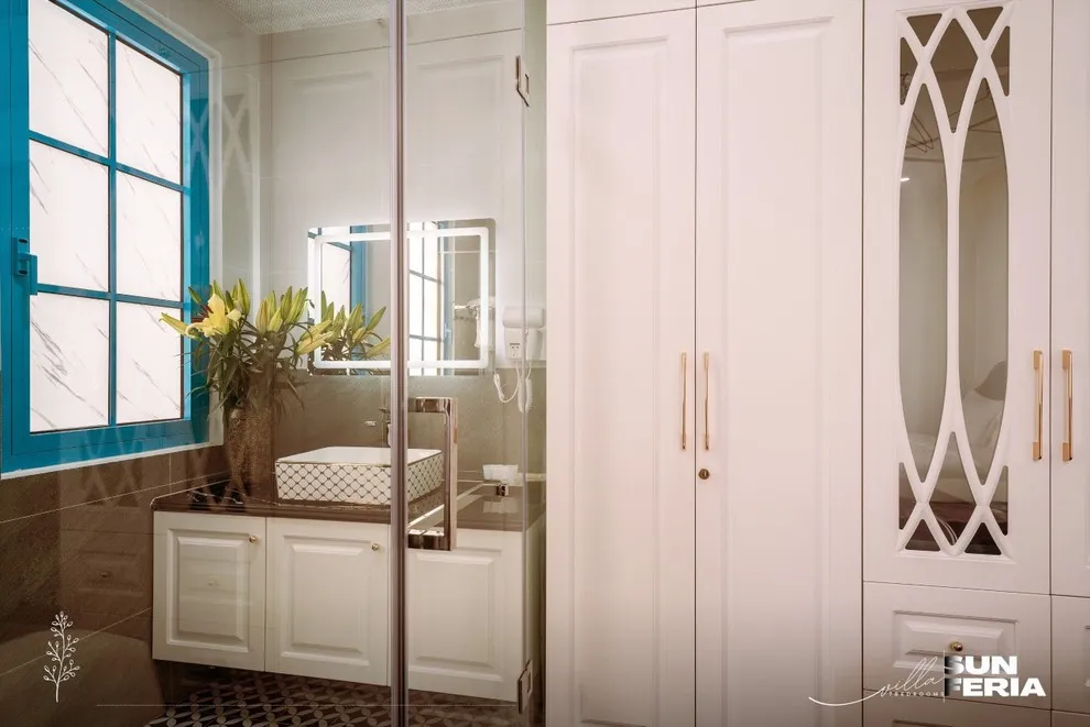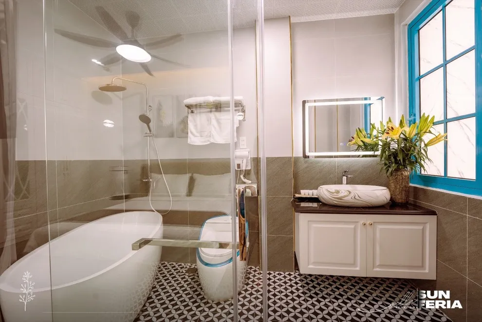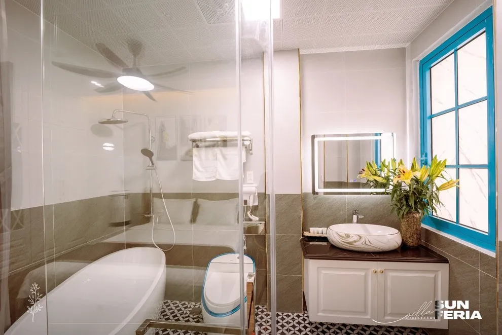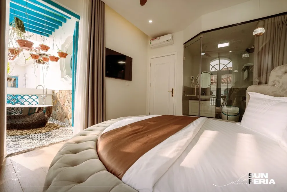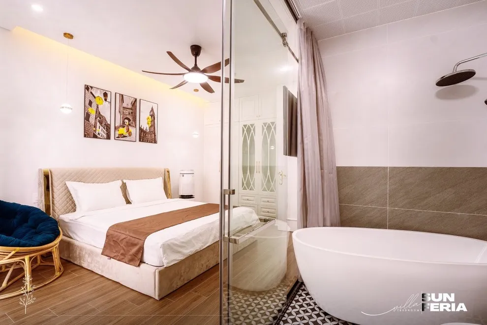Được thiết kế để nuông chiều mọi giác quan của du khách, Villa C806 sở hữu quy mô 7 phòng ngủ rộng rãi với hệ thống thang máy cao cấp, giúp việc di chuyển giữa các tầng trở nên nhẹ nhàng, đặc biệt thuận tiện cho người cao tuổi và trẻ nhỏ. Sự thư giãn được nâng tầm tối đa với thiết kế bồn tắm độc đáo: bạn có thể chọn ngâm mình riêng tư với bồn tắm trong nhà hoặc tận hưởng cảm giác mới lạ với bồn tắm ngoài trời cực “chill”. Bên cạnh đó, Villa được trang bị đầy đủ tiện nghi như chính ngôi nhà của bạn với máy giặt, máy sấy quần áo, bàn là và trọn bộ hóa mỹ phẩm cá nhân, giúp bạn thảnh thơi tận hưởng kỳ nghỉ dài ngày mà không lo thiếu thốn bất cứ thứ gì.