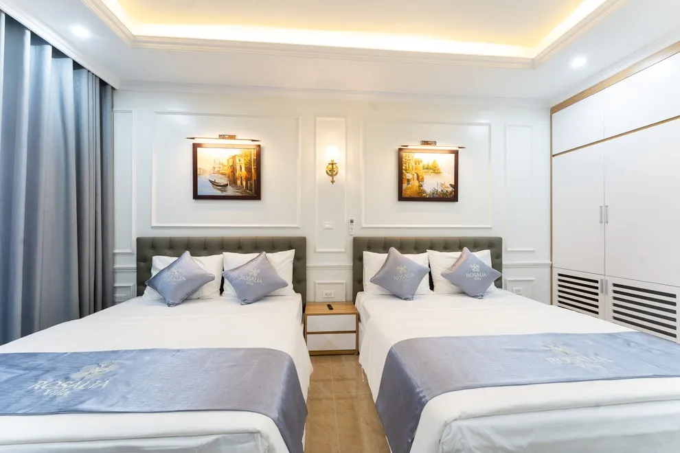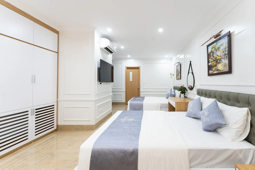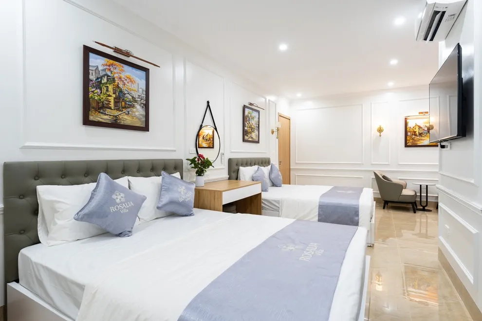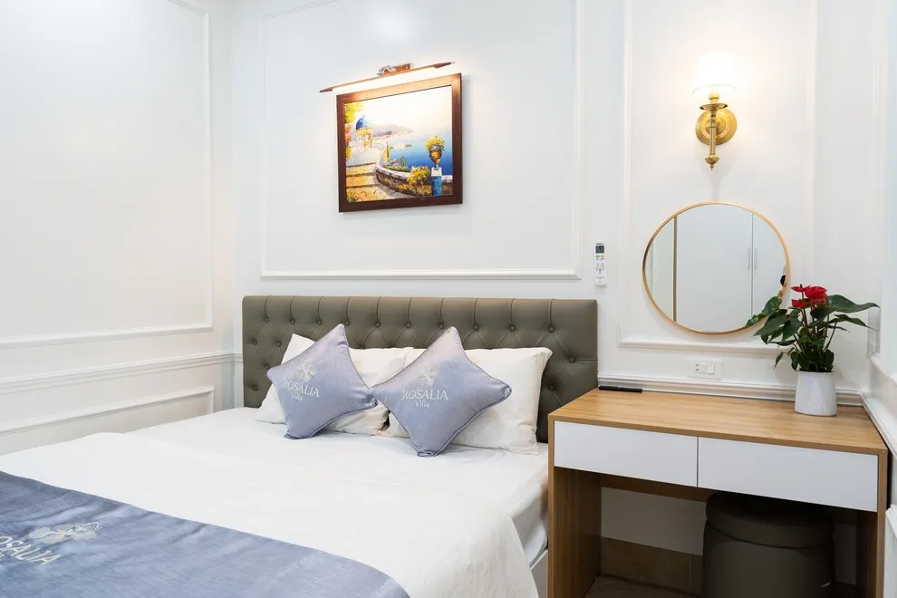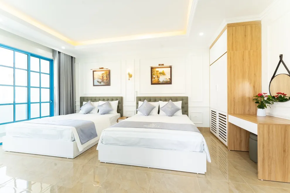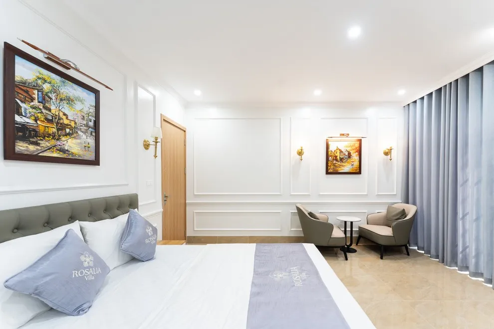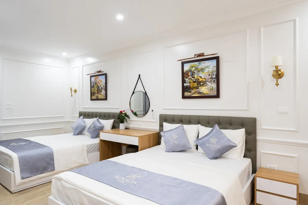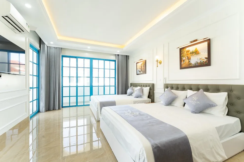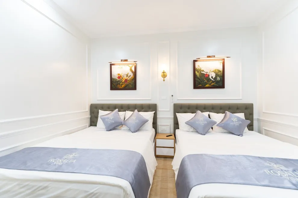 Villa có tổng cộng 6 phòng ngủ với 11 giường. Cụ thể gồm 5 phòng đôi (mỗi phòng 2 giường 1m6) và 1 phòng đơn (1 giường 1m8), giúp đoàn 22 người có không gian ngủ rộng rãi mà không cần kê thêm đệm phụ quá nhiều.