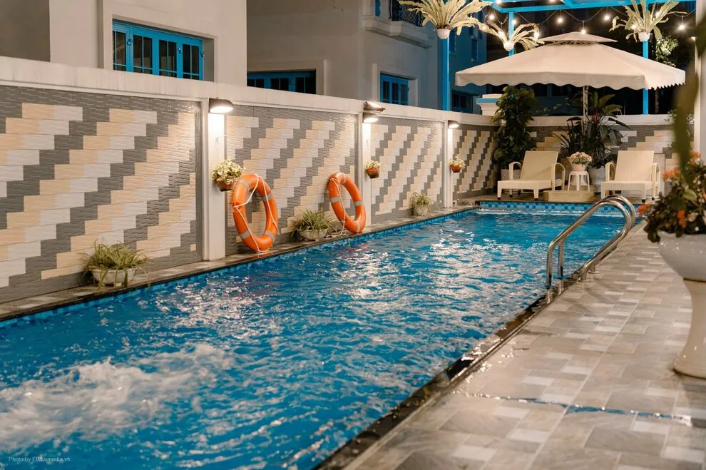 Bể bơi tại Villa M 334 là bể bơi ngoài trời tiêu chuẩn (nước mát tự nhiên), không có chế độ nước nóng. Vào mùa hè, đây là nơi giải nhiệt tuyệt vời. Nếu Quý khách đi vào mùa đông, bể bơi sẽ phù hợp để check-in chụp ảnh cảnh quan sân vườn.