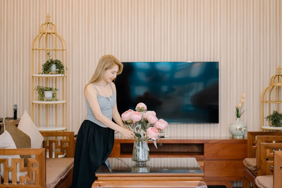 Villa trang bị dàn loa Karaoke tại phòng khách kết nối dễ dàng qua Bluetooth hoặc dây cáp với Smart TV. Quý khách có thể chọn bài hát trực tiếp trên Youtube của TV hoặc qua điện thoại cá nhân rất tiện lợi.