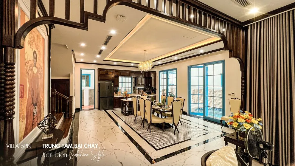Nằm kiêu hãnh tại phân khu Mallorca 6, ngay trên trục đường Kỳ Quan sầm uất ven biển Bãi Cháy, Villa M 6-18 không chỉ là một nơi lưu trú, mà là một không gian thưởng lãm nghệ thuật sống dành riêng cho những vị khách VIP. Được thiết kế theo phong cách Indochine (Đông Dương), căn biệt thự là bản giao hưởng hoàn hảo giữa nét hoài cổ Á Đông và sự sang trọng, hiện đại của phương Tây, mang lại cảm giác ấm cúng nhưng đầy quyền uy ngay từ cái nhìn đầu tiên.