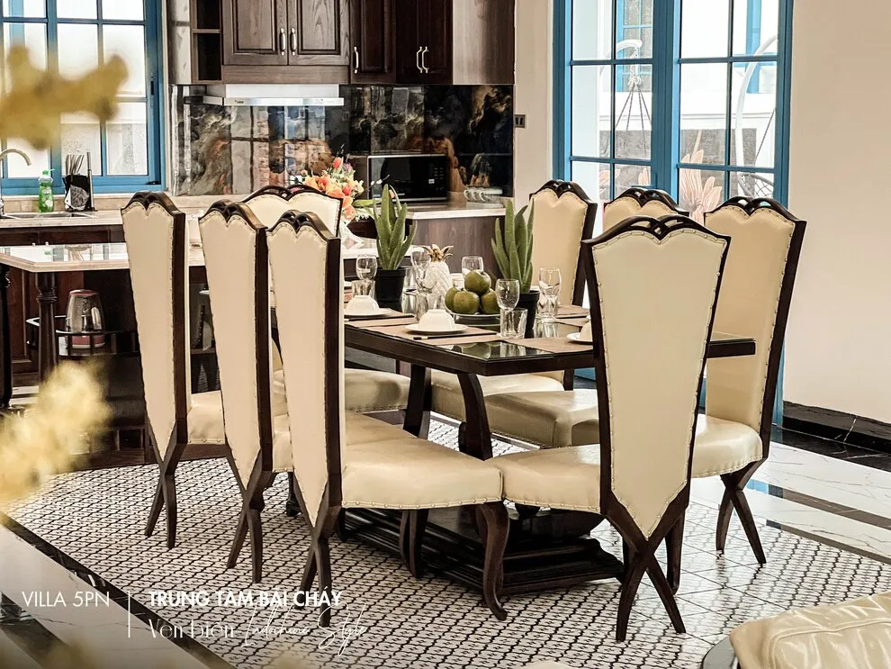 Tại đây, mọi cuộc vui đều được đẩy lên cao trào với dàn loa công suất lớn phục vụ Karaoke và nghe nhạc ngay tại phòng khách. Khu vực bếp và phòng ăn cũng được gia chủ chăm chút tỉ mỉ “đến tận răng” với đầy đủ gia vị, bếp từ, lò vi sóng, và bếp nướng BBQ ngoài trời, sẵn sàng cho những bữa tiệc hải sản thịnh soạn trong không gian gió biển trong lành.