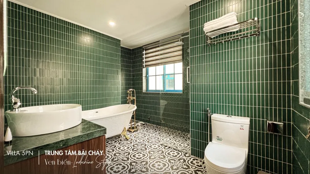 Tất cả 06 phòng tắm đều được setup tiêu chuẩn với đầy đủ: Khăn tắm, khăn mặt, máy sấy tóc, dầu gội, sữa tắm, bàn chải và kem đánh răng. Quý khách chỉ cần mang theo đồ dưỡng da hoặc mỹ phẩm cá nhân của mình.
