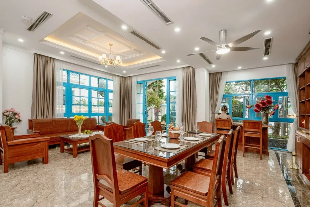 3.5 Đồ đạc: Không tự ý di chuyển đồ đạc giữa các biệt thự hoặc thay đổi bố trí trong phòng. Mất hoặc hỏng sẽ phải đền bù.