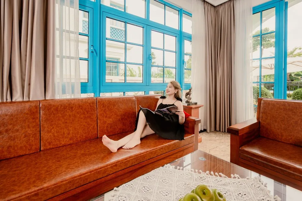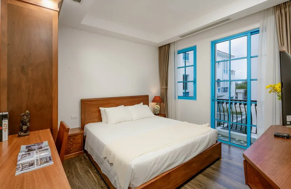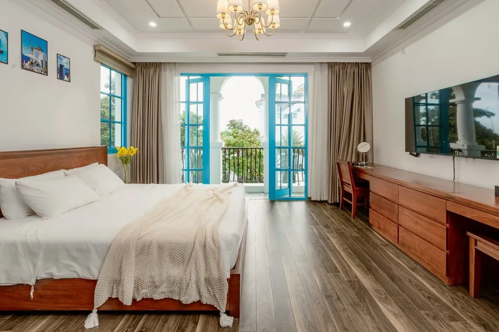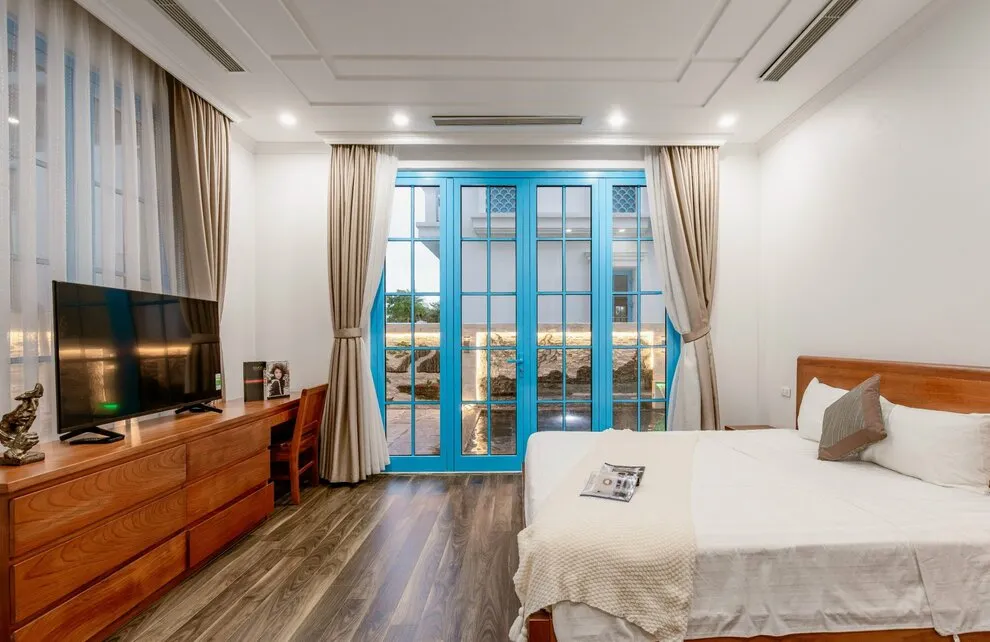 Bước vào bên trong, du khách sẽ bị chinh phục bởi sự tiện nghi và sang trọng với quy mô 06 phòng ngủ khép kín. Điểm cộng lớn nhất của M 2-41 là hệ thống giường ngủ đồng bộ kích thước lớn (King size 1.8m) tại tất cả các phòng, đảm bảo giấc ngủ êm ái nhất cho đoàn tiêu chuẩn 12 người (tối đa 20 khách). Đặc biệt, villa sở hữu tới 07 phòng tắm, trong đó được trang bị 02 bồn sục Jacuzzi hiện đại – nơi bạn có thể ngâm mình thư giãn, massage cơ thể và tái tạo năng lượng sau một ngày dài vui chơi.