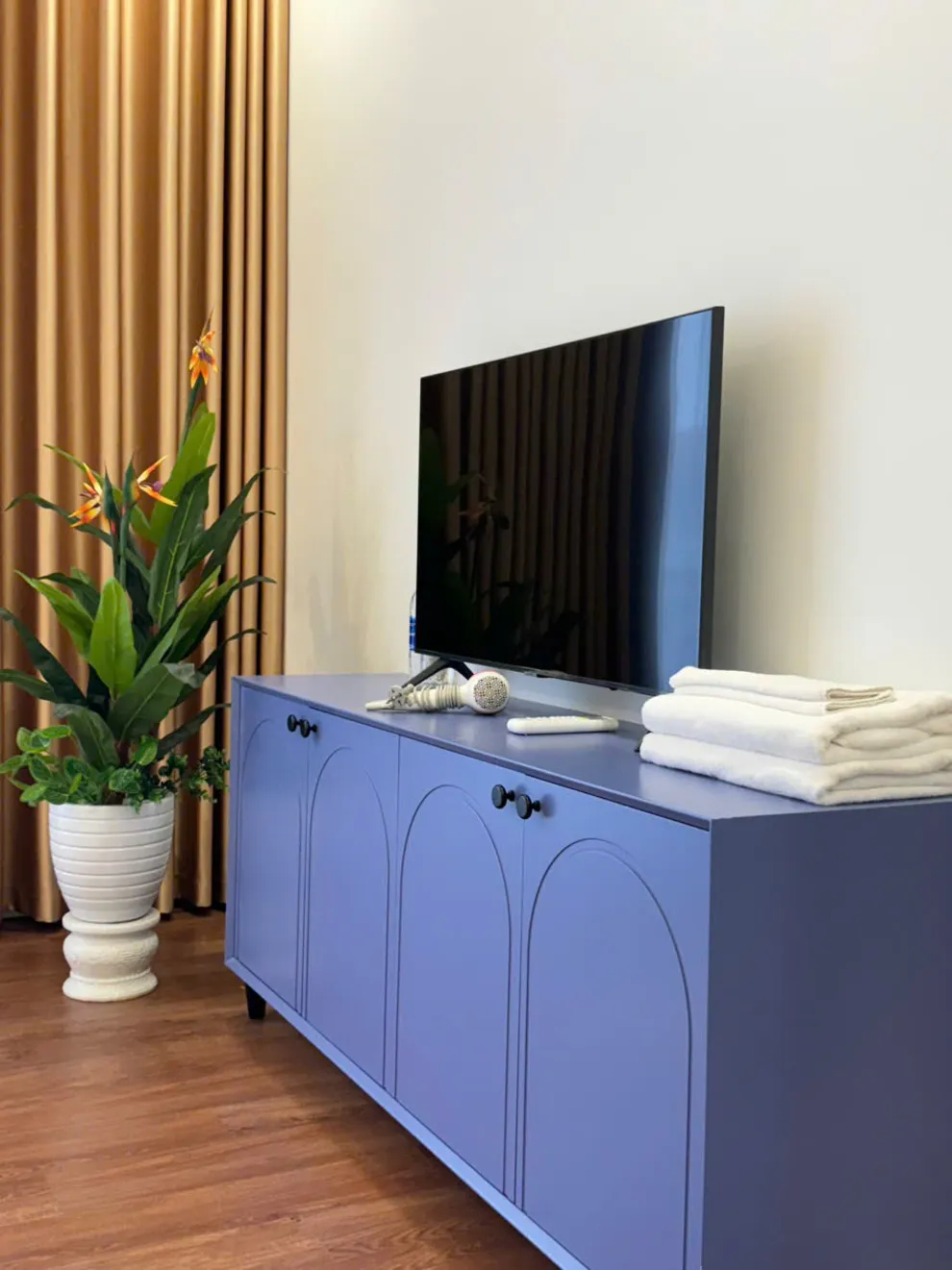 Quý khách có thể sử dụng dịch vụ thuê loa kéo karaoke để phục vụ nhu cầu ca hát và giải trí ngay tại không gian phòng khách rộng rãi của Villa.
