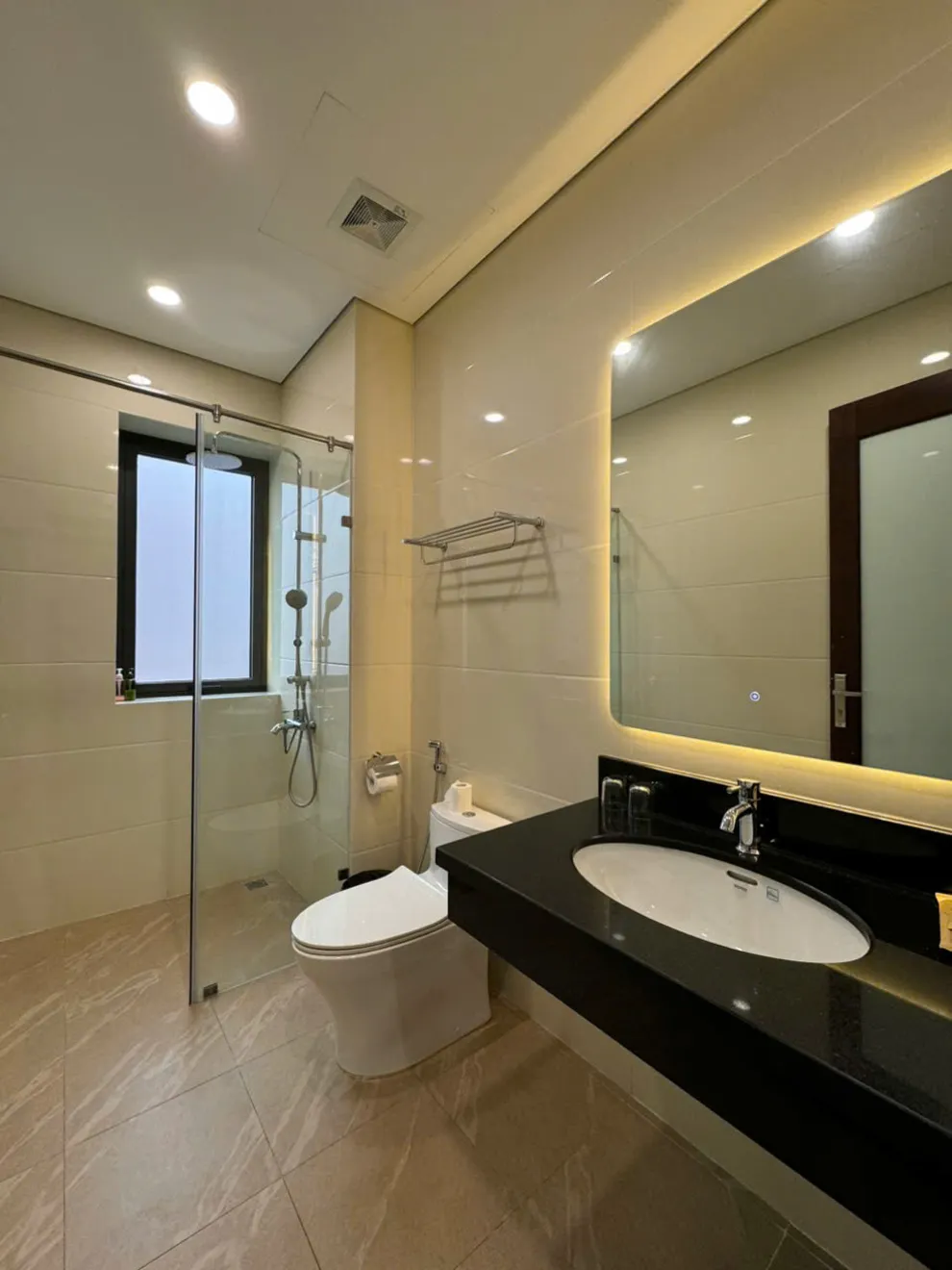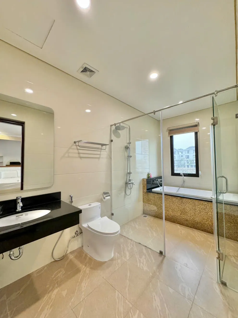 Villa được trang bị tổng cộng 8 nhà tắm riêng biệt đi kèm với 9 nhà vệ sinh, đảm bảo sự tiện lợi và riêng tư tuyệt đối cho đoàn khách tiêu chuẩn 16 người lớn và 8 trẻ em.
