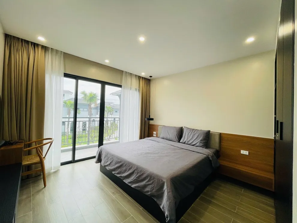 Căn villa này sở hữu cấu trúc 4 phòng ngủ riêng biệt, mỗi phòng được trang bị 1 giường lớn tiêu chuẩn. Đây là lựa chọn lý tưởng cho các đoàn khách cần sự riêng tư tuyệt đối cho từng thành viên hoặc từng cặp đôi.