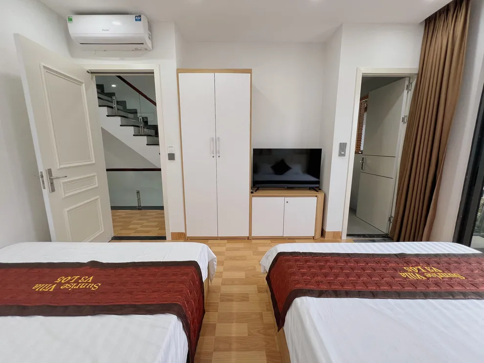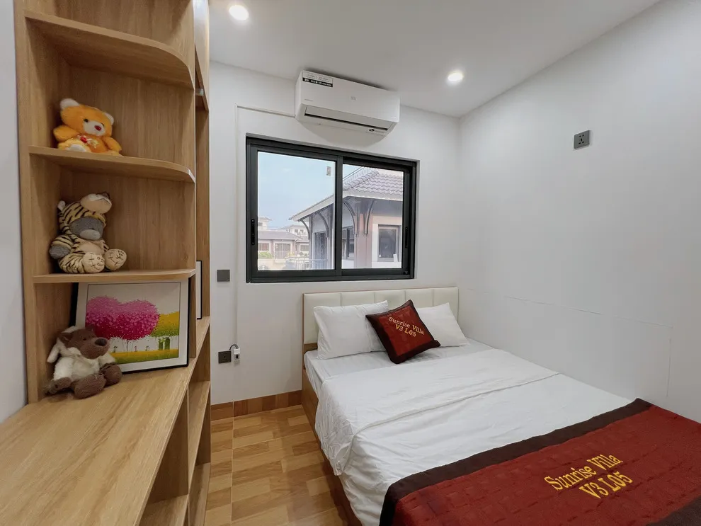 Villa V3L05 có tổng cộng 5 giường lớn. Cấu trúc căn hộ bao gồm 3 phòng ngủ tiêu chuẩn và thêm 1 phòng đa năng được bố trí giường nghỉ, giúp đoàn đông có không gian ngủ riêng biệt và thoải mái hơn hẳn các căn villa 3 phòng ngủ thông thường.