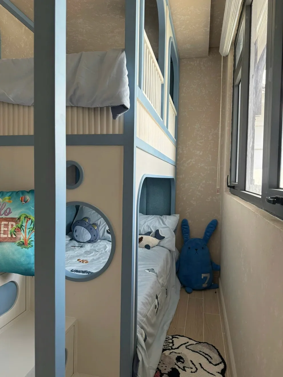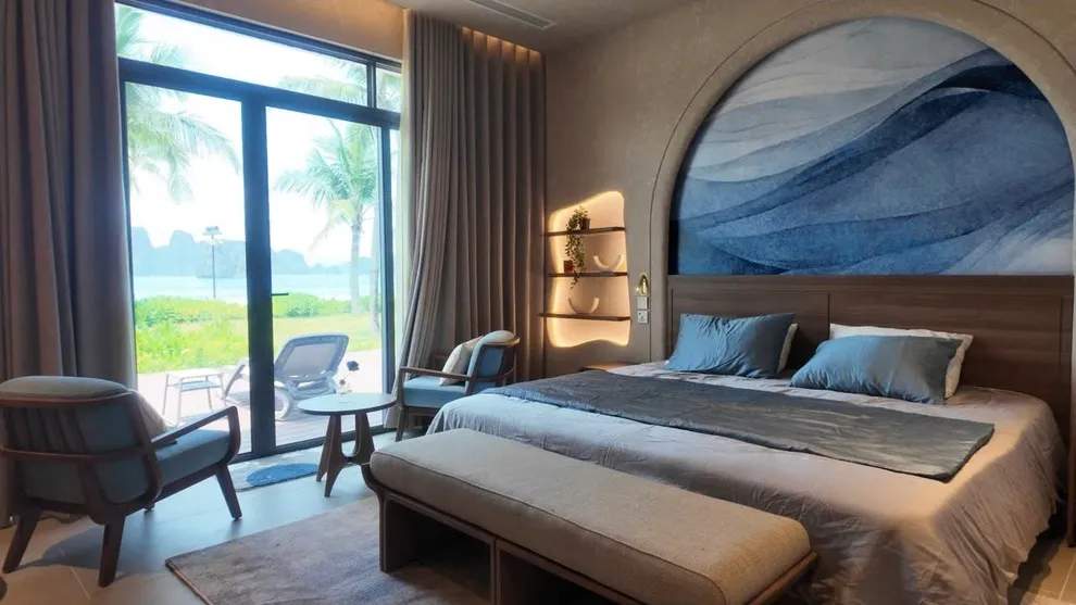 : Đây là thiết kế "siêu công năng" đặc biệt của villa nhằm phục vụ các đoàn khách đông muốn ở gần biển. Ngoài các phòng ngủ chính, villa tận dụng không gian để bố trí tổng cộng 05 giường đôi lớn, giúp đoàn 10 người lớn có chỗ ngủ tiêu chuẩn mà không cần kê thêm đệm phụ.