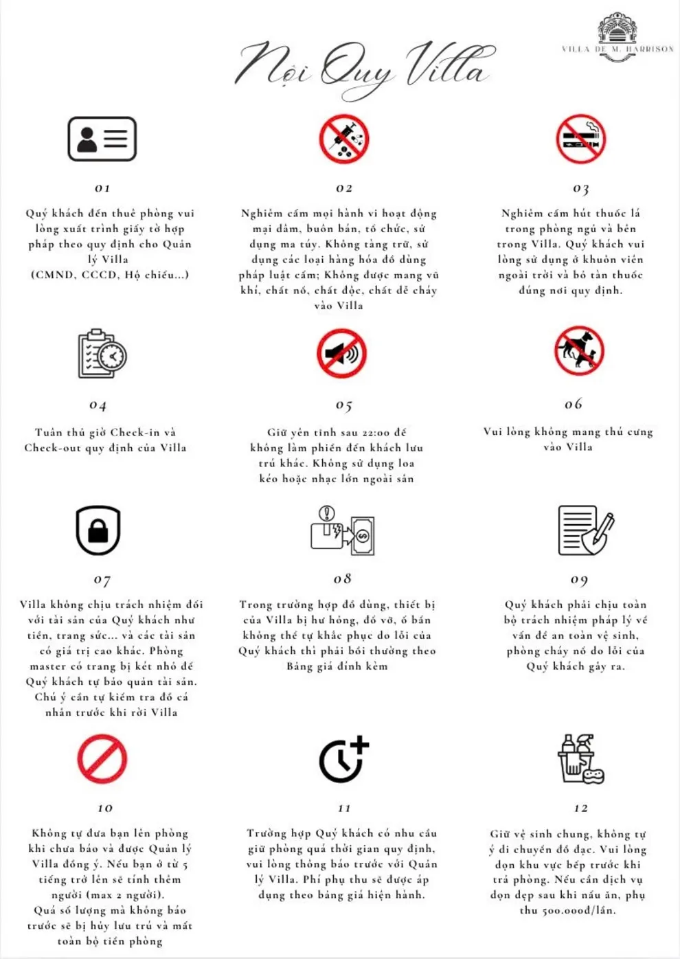 LƯU Ý: Việc hoàn tất đặt cọc đồng nghĩa với việc Quý khách cam kết tuân thủ toàn bộ quy định trên của Villa V3R03.