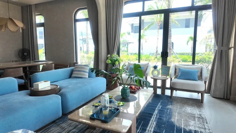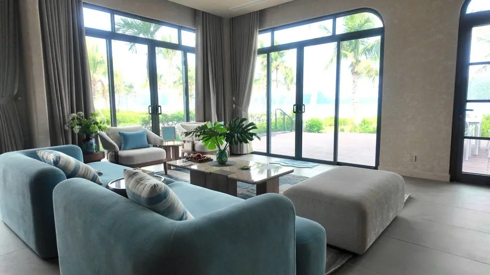 Điểm làm nên sự khác biệt hoàn toàn của V3R03 chính là cấu trúc 3 phòng ngủ nhưng sở hữu tới 5 giường lớn. Thiết kế này biến căn biệt thự thành một không gian lưu trú “khủng”, đáp ứng chỗ ngủ tiêu chuẩn cho số lượng người tương đương với các căn 5 phòng ngủ thông thường nhưng vẫn giữ được sự ấm cúng, kết nối của một gia đình. Nội thất tại V3R03 được đầu tư theo tiêu chuẩn cao cấp nhất, với phòng khách rộng lớn hướng biển, mang lại trải nghiệm sống đẳng cấp và khác biệt.